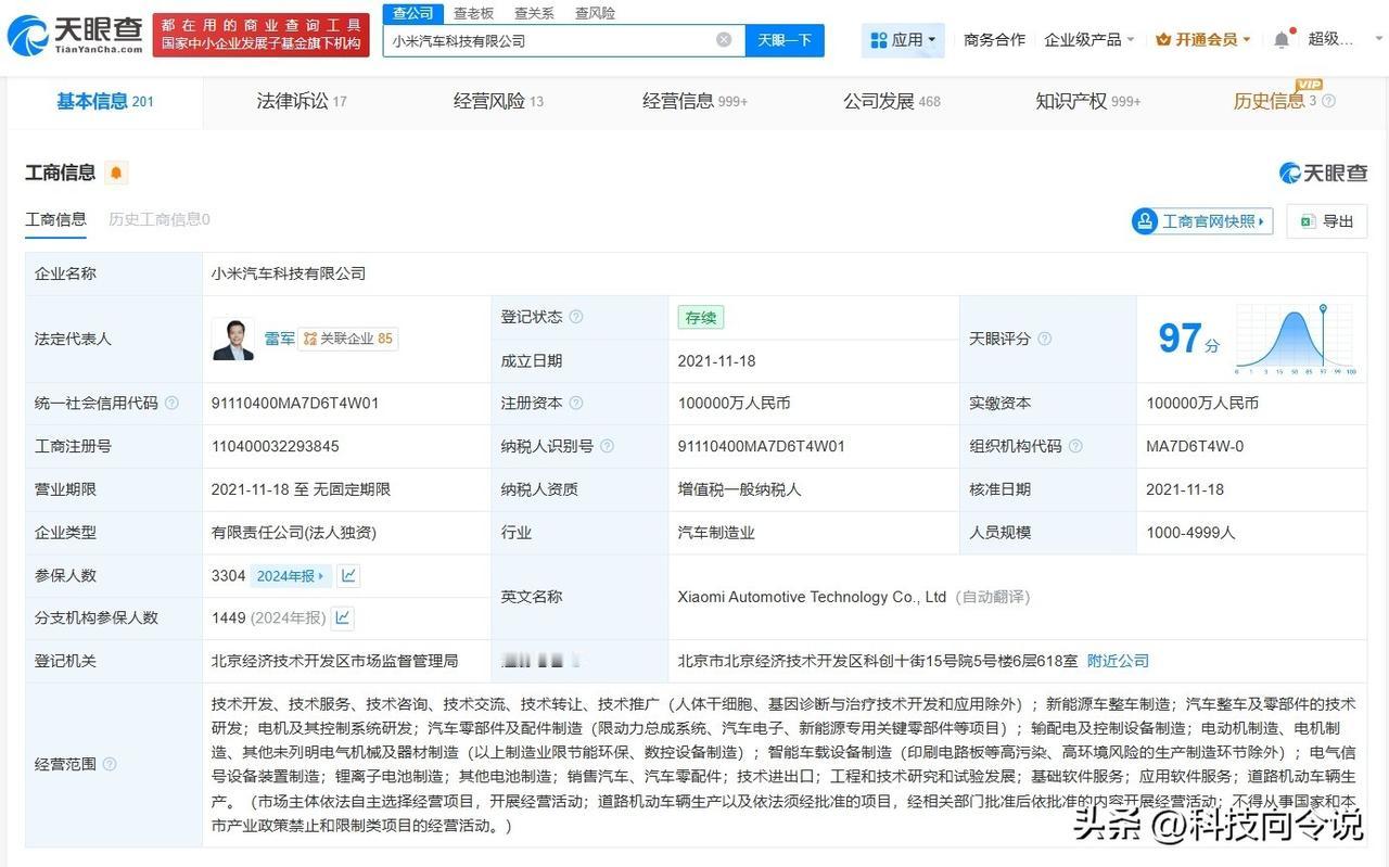 【小米汽车登记AI小苏软件著作权】 天眼查App显示,近日,小米汽车科技有限公司获批登记“AI小苏-智数智能体助手系统”软件著作权,版本号为V1.0。 该公司成立于2021年11月,法定代表人为雷军,注册资本10亿人民币,经营范围包括新能源车整车制造、汽车整车及零部件的技术研发、电机及其控制系统研发等,由小米科技有限责任公司全资持股。 天眼查信息: