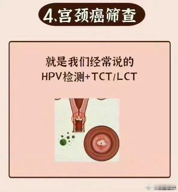 宫颈癌筛查就是宫颈脱落细胞检查以及HPV的检查,这是妇科三大恶性肿瘤唯一进入筛查的项目。