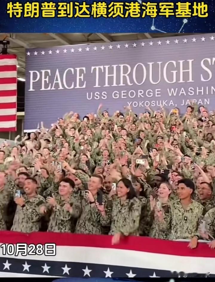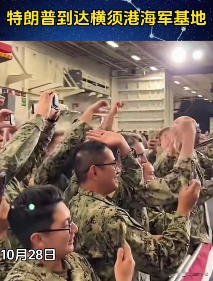 特朗普前往日本横须贺海军基地慰问官兵,大家是否察觉到三个不同的变化呢? 其一,美国官兵皆可手持手机拍照,看来官兵被允许使用手机! 其二,在众多美军官兵之中,能看到不少亚洲面孔,他们欢呼雀跃。 其三,80岁的特朗普腰板挺直,身体保养得还挺好。 大家还发现了什么?