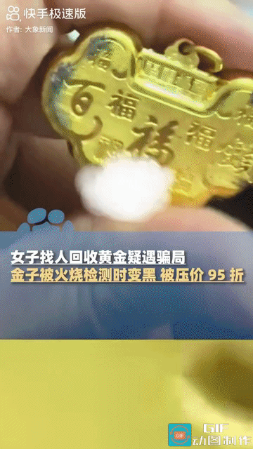 “无商不奸!”四川成都,女子趁着金子涨价就想把手里的金子拿去卖了。来到店里,工作人员用火烧检测金子的纯度,结果老板说金子变黑了,有杂质,只能给9.5折。 女子一看觉得老板骗自己,因为她觉得,如果她的金子纯度不够,应该是烧的那一面变黑,但她的是没被烧的变黑了,肯定是老板用了什么方法让她的金子变黑了,这样就可以压价了。 只是她金子现在变黑了,她不知道该怎么弄了! 对此有网友说:我以前在金店上过一次当,当时不懂,我一个耳坠,断了,然后烧的时候断的那一小段是黑的,他说那一段是假的,只拿大的那一段换的,那一小段就没要扔那里了,现在才想明白,一个整体的耳坠,断的那一截怎么可能是假的,好多年了,还是一个商场的黄金柜台! 也有网友说:晕死,十几年前我卖金子也发生过同样的问题,又是给老板打电话又是给我折扣,12.8克的金子最后只交易了8克多,我还以为买的金子不纯呢! 还有网友说:我12克项链,我对象拿去称,收黄金称的8.5克,问他卖不,他说我不卖,我媳妇的12克的,到你这里少的可不是一点哦! 我记得前段时间我闺蜜也是拿着一个戒指去金店回收,她买的时候是按800元价格买的没称重。没烧前是1.2了,烧完了只剩下0.8克,老板说里面有水分,我们也不懂,最后还亏了,她说早知道就不买了! 我越想越觉得不对劲,金子里面还有水分?那买的时候不是一起称了吗?那不是连水一起买了?那这样,我们买的时候是不是也得烧一下呢? 总感觉金店很坑人,因为我们不懂,就在她们随便说,现在金子那么贵,随便一点就损失很多钱。所以如果不是缺钱,最好不要卖。要卖也要找懂行朋友的问问,或者哪里买的发票留好,想卖的时候就哪里卖,总不至于还被坑,他敢说你不纯,你就可以告他欺骗消费者! 就像这个,他还愿意收,那就说明金子没问题,只是不知道他用了什么方法把金子弄黑了! 那么有没有懂行的朋友知道金子怎么变黑了? (视频来源:大象新闻,侵删[祈祷]:)