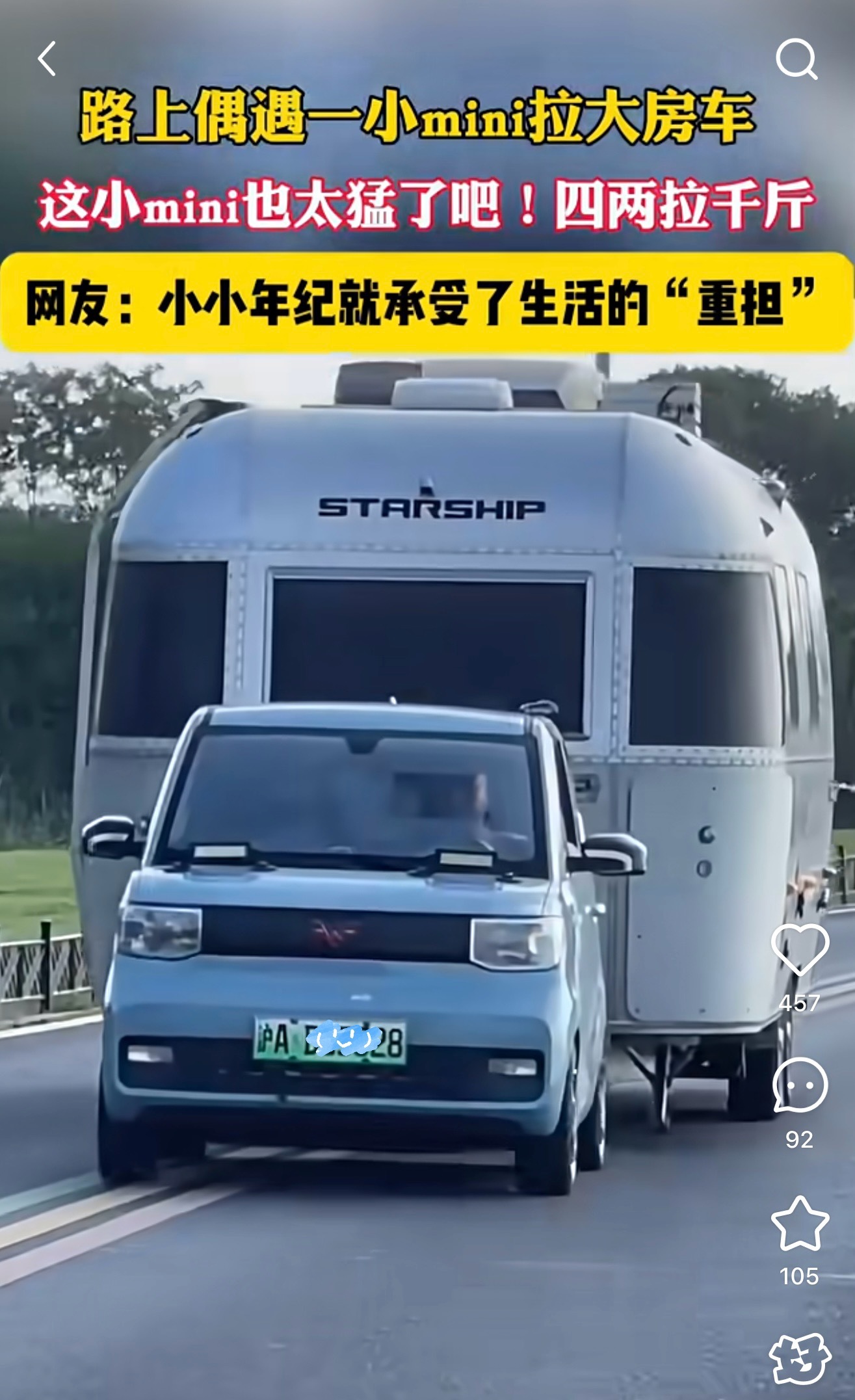 五菱mini ev拉这么大的房车,不知道这么搞续航有50公里不[捂嘴哭] ​​​