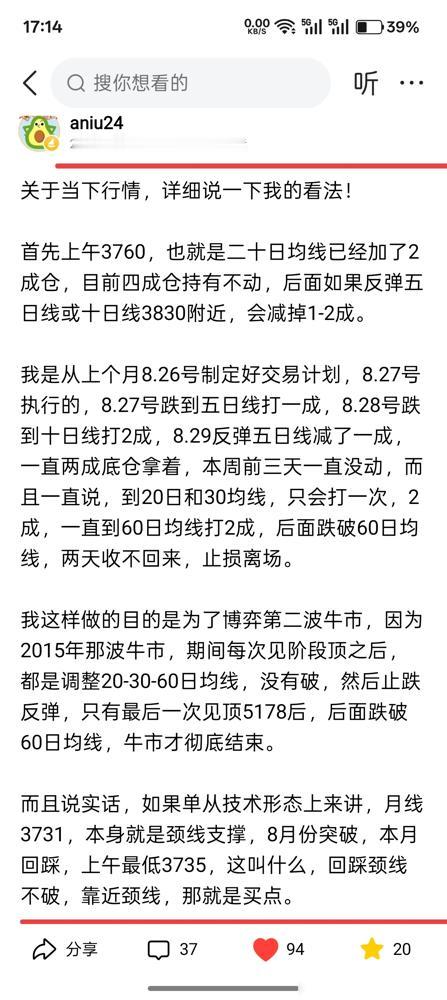 A股,新一轮慢牛行情进行中! 朋友们,这波行情如果你想赚钱, 当下最好的操作就是,手中一定要有三成底仓,拿中线,且卧倒不动。 这波“慢牛”的呼声听着是真耳熟。回头看看七八月份的走势,指数确实有过一波上扬,但随后九月份的震荡也让不少追高的人吃了苦头。现在喊出“复制行情”,是不是有点过于乐观了? 光说回踩五日均线加仓,听起来很稳妥。但实际操作起来,难点在于判断什么是有效的“回踩”。是稍微跌一点就算,还是必须有一定幅度的下跌?万一碰上连续阴跌,五日均线一路向下,那每次回踩都加仓,岂不是越套越深?这个策略的前提是市场保持明确的上升趋势,一旦趋势生变,风险可不小。 再看看外部环境。美联储的加息动向一直悬在头顶,全球资本市场的波动性明显加大。国内这边的经济数据,像PMI和消费指数,也是有好有坏,恢复的根基还需要更扎实的证据。单凭技术图形就断言“慢牛”,似乎把复杂的市场想得太简单了。 提到三成底仓从3760点拿到现在赚了230点,这当然是成功的个例。但没法保证每个人都能在同样的点位精准上车,更没法保证未来还能复制同样的收益。过去的利润不能直接等同于未来的安全垫,这个道理得明白。 现在的市场情绪挺分裂的。一边是各种利好政策在托底,感觉跌不下去;另一边是成交量时高时低,说明大家还是犹豫,不敢全力做多。这种环境下,喊“卧倒不动”可能不如“灵活应对”来得实际。毕竟,谁也不知道下一个黑天鹅会从哪儿飞来。 总之吧,牛市谁都盼,但具体怎么走还得市场说了算。盲目跟着口号操作,风险可能比机会更大。多看看基本面,控制好仓位,保持警惕总没坏处。