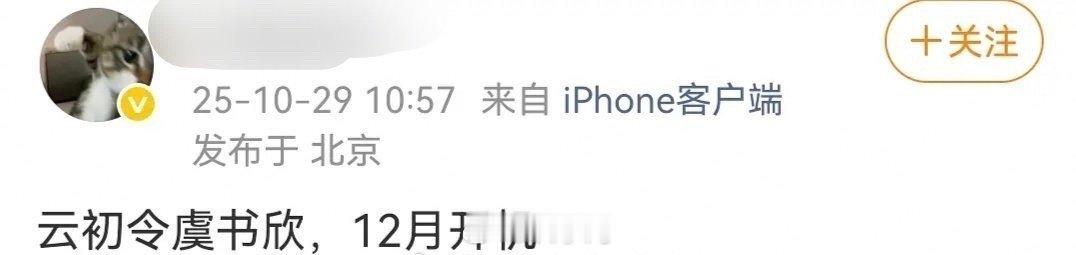 虞书欣云初令预计12月开机