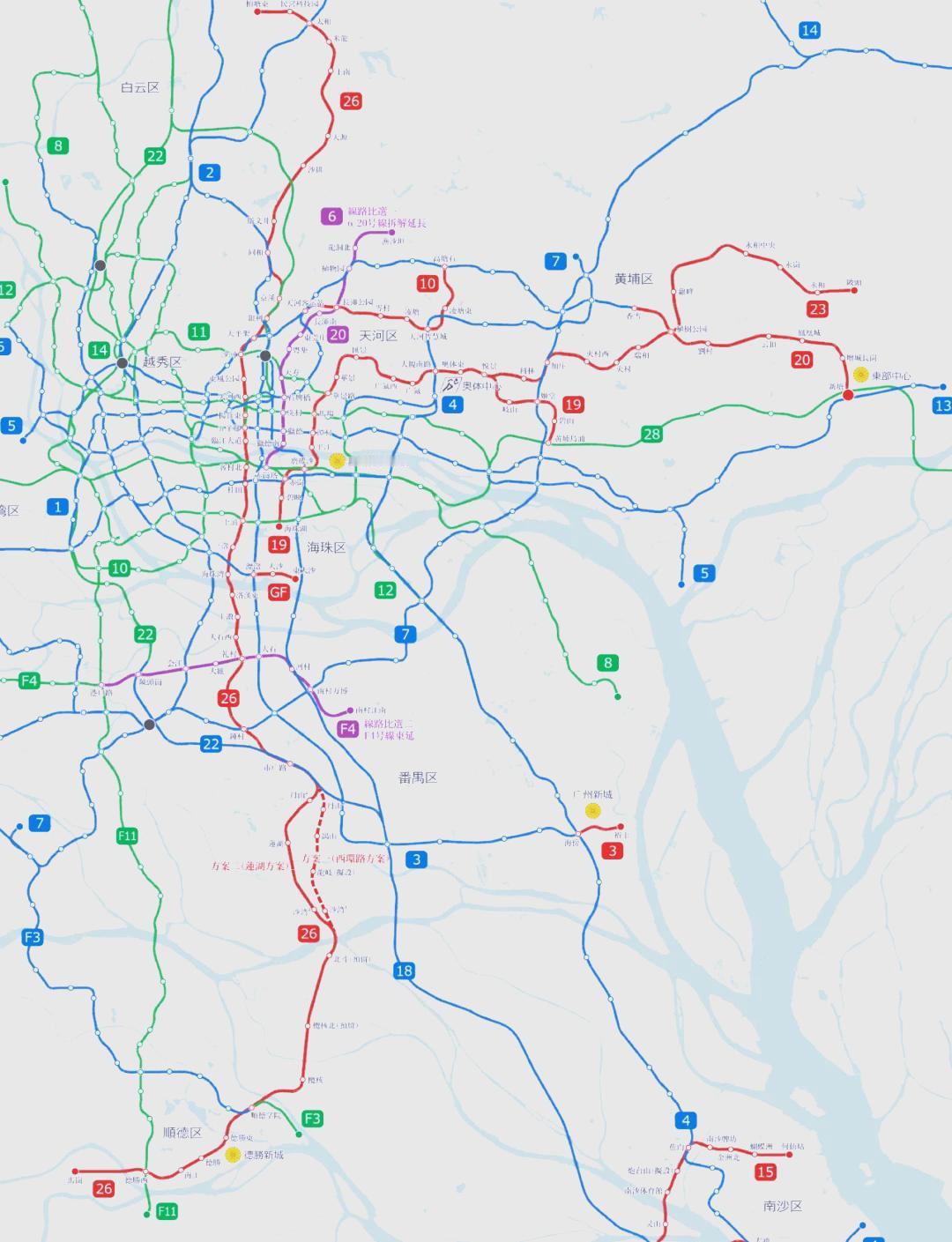 广州地铁第四期规划备受广大网友关注,但是目前官方透露的信息少之又少,导致民间讨论激烈。当前不少城市的地铁线路违背了解决交通拥堵的初衷,较少考虑市民的出行需求,更多是为了拓展新区,为了推高轨道交通沿线土地价格而建。 下面是一名网友对广州地铁四期规划的建议,还是比较贴合实际情况的。 转述如下:广州地铁四期应该挑一些重要线路先报上去,修好了直接报第五批,像深圳一样,没必要一次报太多。 1、26号线全段(应该延伸到白云T3强化枢纽,去马岗不如改为去容桂城区,马岗真啥都没有都是农田,现在这个情况就别想着卖地了)。 2、19全段(龙潭村站-黄埔站)。 3、28在芳村-黄埔火车站增设复复线开站站乐,多加点站。都是市区地铁盲区就这样浪费太奇葩。可以把25作为28复复线,过了琶洲西区再过江去金融城而不是完全和5平行。在芳村以西走茶滘-盐步去千灯湖核心区和桂城,分流过于拥挤的广佛线。 4、15横沥-蕉门。 5、6-20拆解,20向东延伸到开发区永和(再往东就只有工厂了,客流没保障),向西延伸到广州塔,通过站厅把广州塔和赤岗塔两个站联通。 6、10东延岑村、天河智慧城和科学城,没必要主角拐弯去高唐,不如和21、6平行设置到金峰换6。 7、芳村大道-广佛路线位,从芳村到滘口、黄岐、大沥,这一段真的地狱级别交通!可以和前面说的25号线直通作为25支线。 但总结就是,一定要往有人的地方走,别再想着为了卖地走无人区和工业区了!