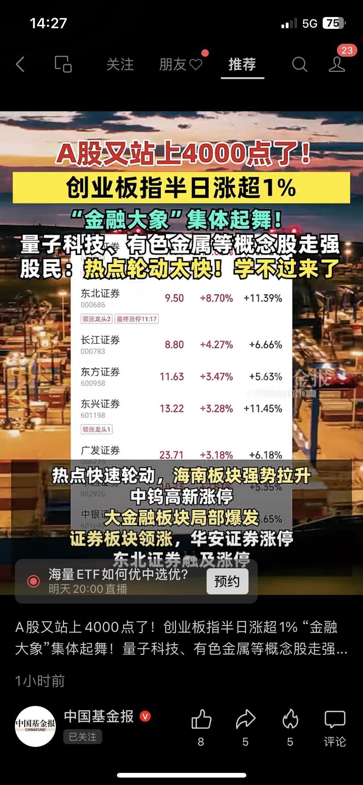炸了!A股突袭4000点,金融股疯了!今天A股直接杀疯了!沪指半天冲上4000点,创业板涨超1.5%,证券、量子科技股直接涨停一片! 光东北证券就涨了8.7%,半天成交1.42万亿,比昨天多花700多亿!股民都喊“热点换太快,裤衩都跟不上”! 你手里的票跟涨了没? 赶紧查自己账户!转给炒股的朋友,这波能吃大肉不?A股指数