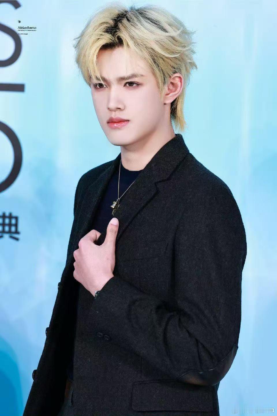 张极自评帅的人默不作声 他说帅的人都安静,可他的颜值偏偏让人无法保持安静。金发在阳光下闪着光,黑西装衬得他气场十足,站在那里就像一个自带光环的主角,让人忍不住关注他的一举一动。