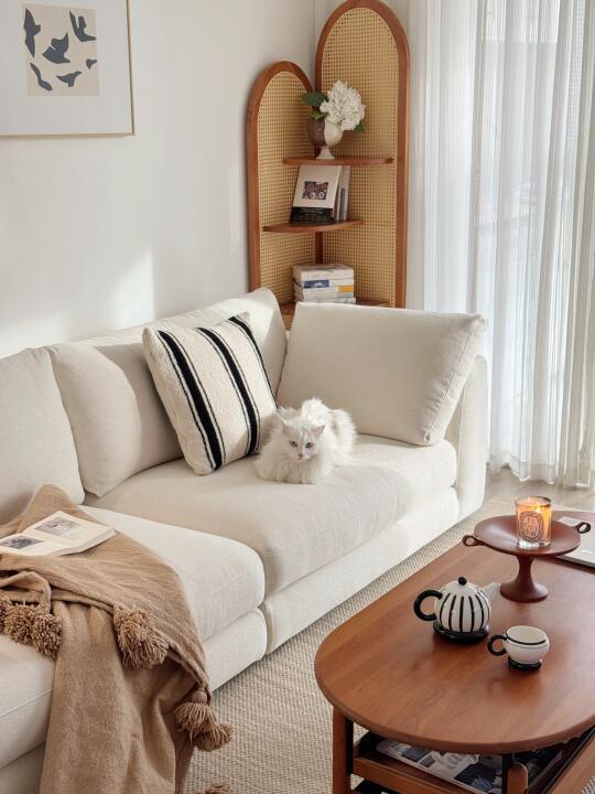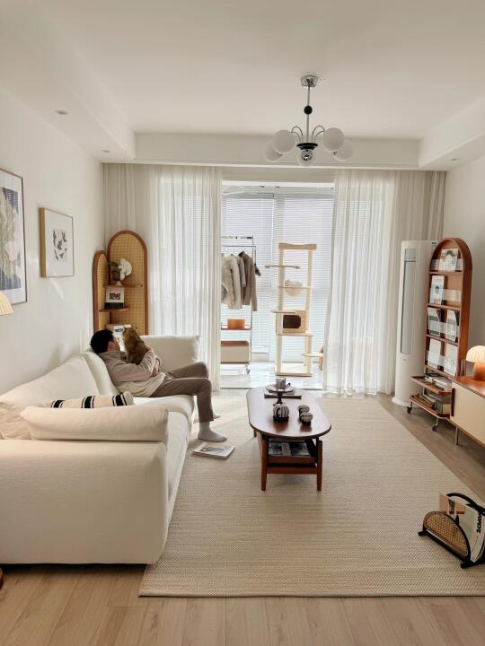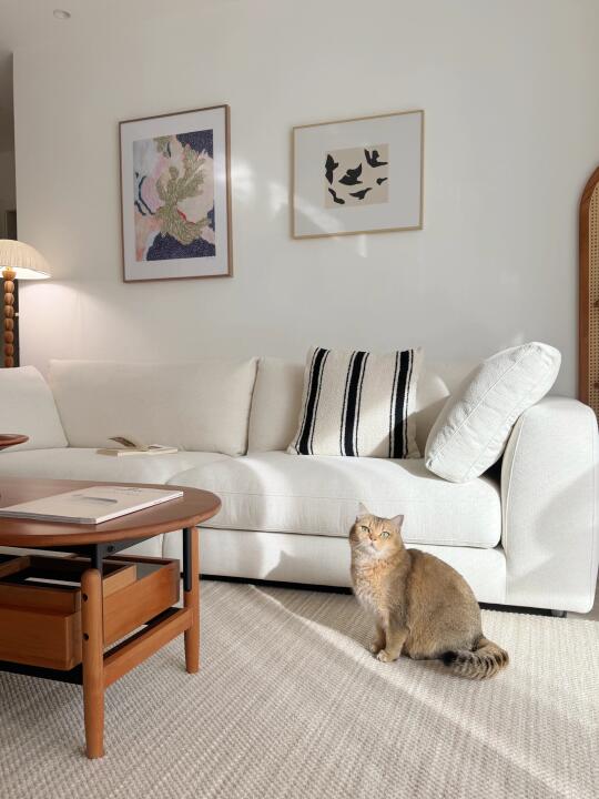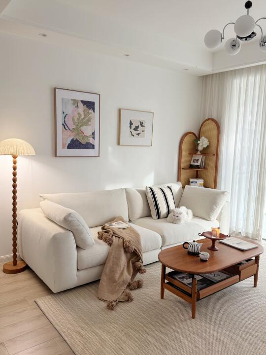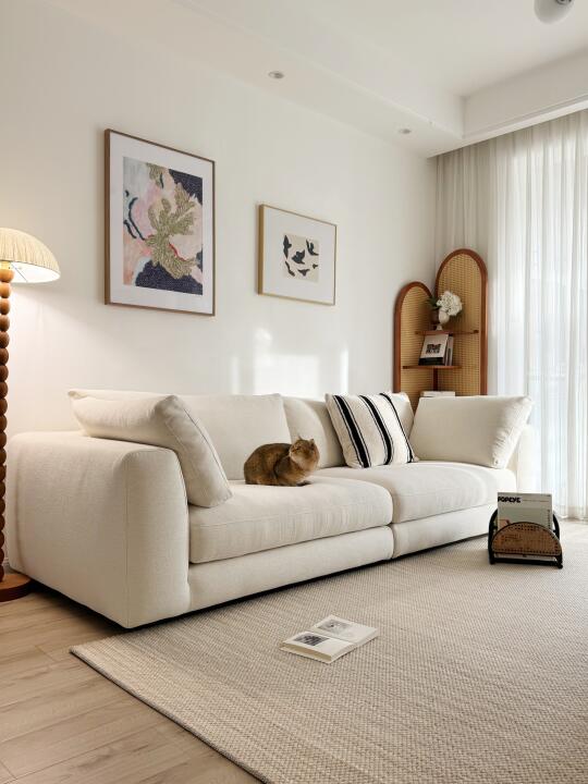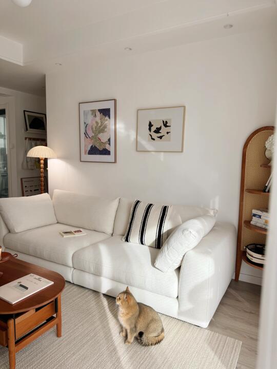 第一次装修没有经验,踩了很多坑,硬装看上去超普通,但是用心布置后也挺好看~ 硬装简简单单不用慌,其实软装才是灵魂,可以通过变动软装轻松改变家居风格~ 入住四年多了,近期换了个新沙发-MOYU莫语莱茵沙发。简约大气的造型和我家很搭,温温柔柔的米白色一眼心动~ 坐感超棒,软软糯糯的鹅绒靠包靠上去也超舒服~每天下班回来只想躺在沙发上,治愈工作一天的疲惫~ 其实硬装没那么满意先别急,用心挑选喜欢的家具软装,也可以布置出好看温馨的家! -