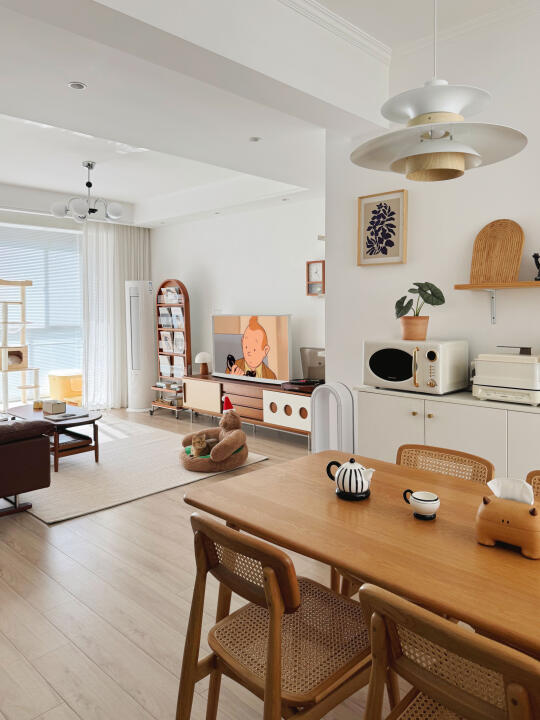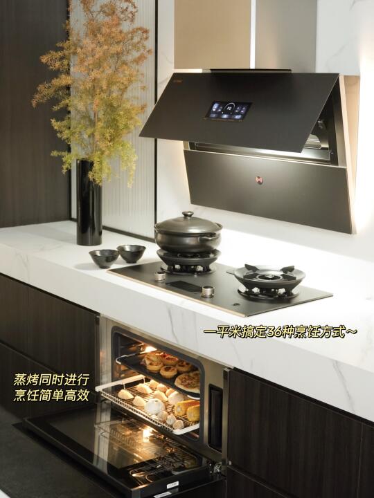 我家套内70平,硬装从简,拆掉了阳台移门,墙面刷大白,客餐厅南北通透还挺显大[黄色心形R] 没有复杂的背景墙,简简单单的硬装搭配温馨的软装就很耐看,入住4年越住越好宅。就是厨房空间有限,没地方放蒸烤炸各种厨电,烹饪方式就很单一,想尝试在家做些大菜很麻烦[叹气R] - 刚好年底我姐家装修好了,前些天去参观被种草了她家的厨房神器——方太集成烹饪中心X20,优雅高级的玥影灰配色一眼戳中我[哇R] 超薄的机身设计视觉上很轻盈,和我的厨房也很适配。最主要的是被他集成厨电的强大功能所吸引,一平米的占地空间就可以搞定煎、炒、蒸、煮、炸、炖、烤、焗等36种烹饪方式[火R] - 上面爆炒,下面也可以蒸烤同时进行,大幅度提高了烹饪效率。可以宅家做出各种菜系,年夜饭现在可以轻松搞定了[耶R]除了可以拥有多样的烹饪方式外,基础的吸油烟效果也很棒,她家是开放式厨房,在客厅也完全闻不到油烟味。 - 还有一些贴心的安全设计,比如蒸汽后排,打开蒸烤箱不会蒸汽扑面,避免了烫伤用起来很安心~拥有了一台好用的集成烹饪中心,下厨也会变成简单又开心的事[派对R] - 小户型尽量规避掉繁琐的硬装,化繁为简,添置好看好用的软装家电,住起来也超舒服[萌萌哒R] -