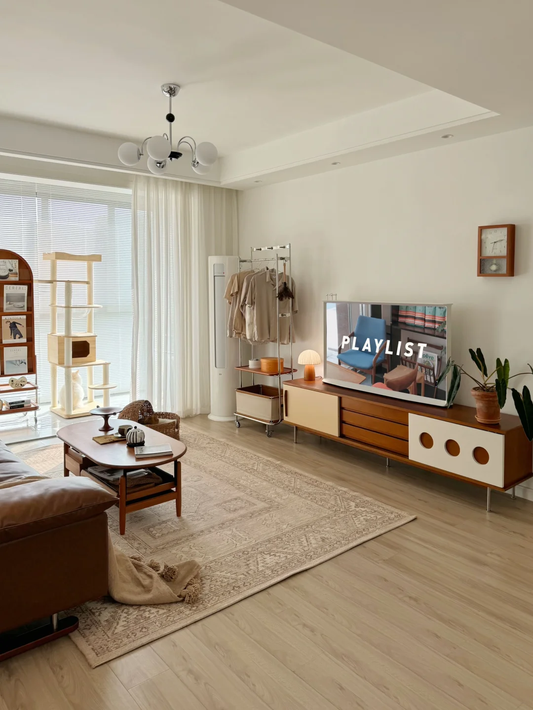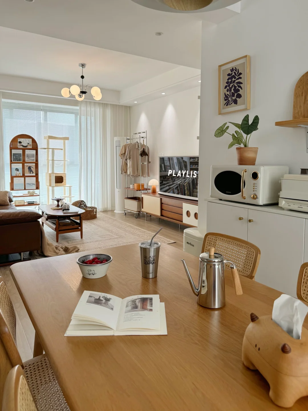 31岁独居,拥有属于自己的小房子,面积不大,但是装满了幸福~当初预算有限,没有请设计师,一切亲力亲为。害怕翻车硬装从简,结果不仅显大,而且省钱又耐看。 打通阳台移门让家更通透,客厅双眼皮吊顶,四周射灯,中间装ins魔豆吊灯,灯光让家温馨有氛围~ 没有固定风格,选的原木风和中古风的实木家具让家更有质感~ 买不起大平层,住不上大别野,但有个自己的小家就挺好,用心布置住起来也超快乐! -