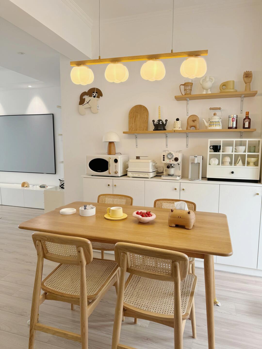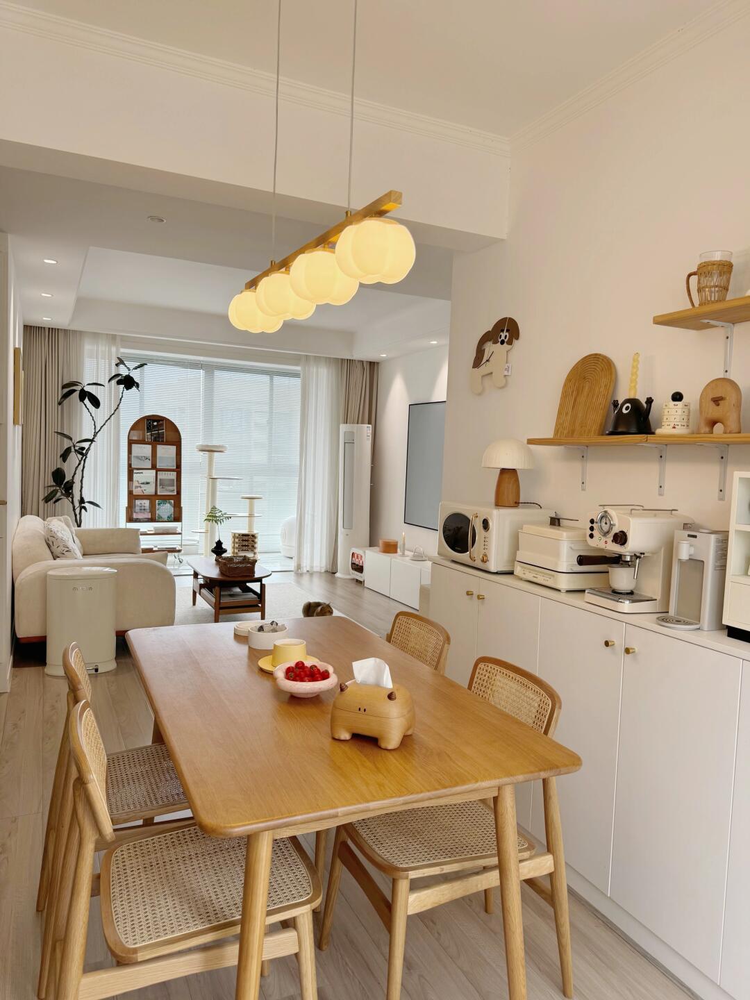 买不起大House,但拥有一个70平小家,用心布置后住起来也超舒服~ 入住四年,慢慢添置喜欢的家居软装,让家变成了我喜欢的原木风,沙发、餐桌和茶几都选了实木的,实木家具让家更有质感~ 硬装不走心,软装却用了不少心思来补救,譬如餐厅选的棉花餐吊灯和原木风很搭,明亮又温馨~ 周末宅在家,拓香石淡淡的香气在屋子里弥漫开,身为i人真的好喜欢这样独处的时光~