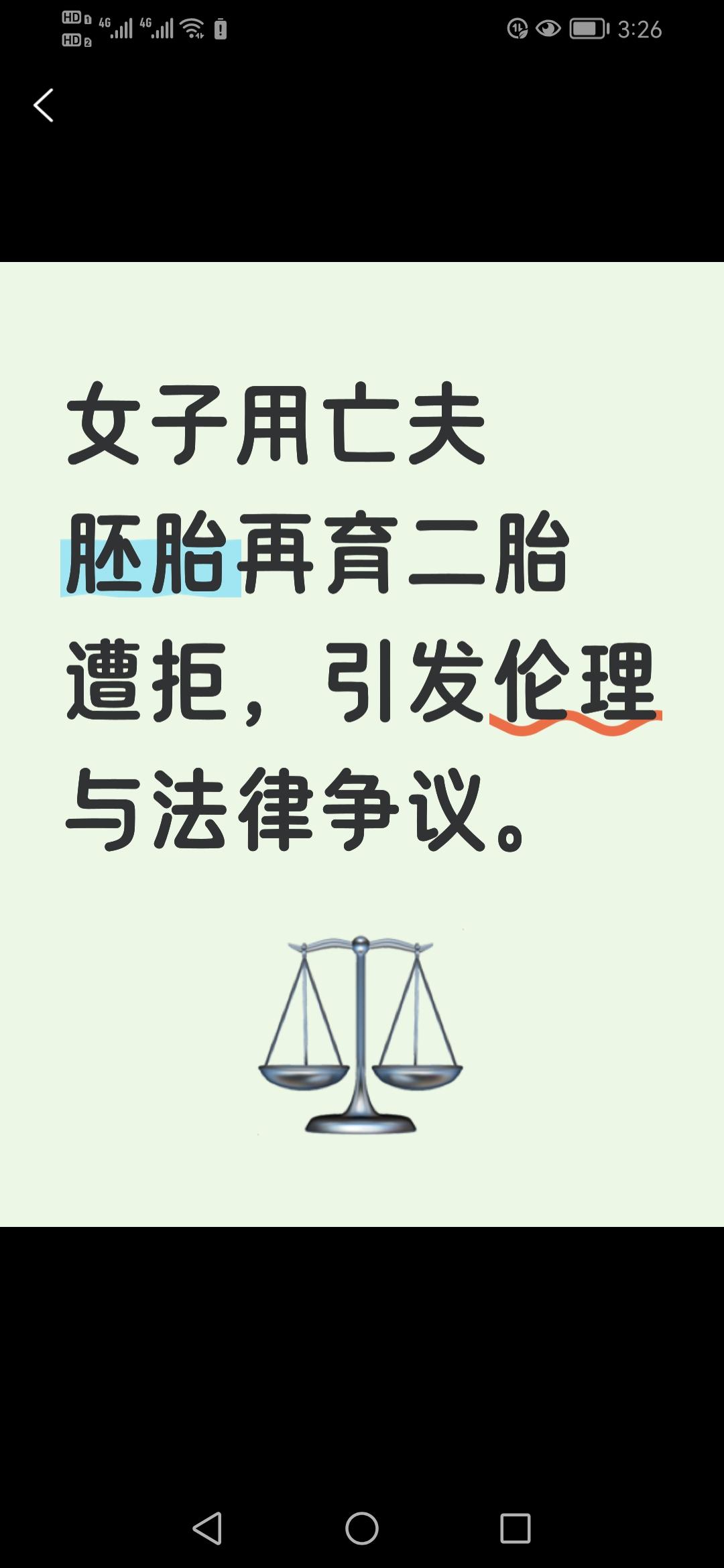一位女子想要利用亡夫的胚胎再育二胎,却遭医院拒绝,背后隐藏着怎样的伦理与法律之争? 随着辅助生殖技术的发展,越来越多的家庭通过试管婴儿技术实现了生育愿望。然而,在福建省福州市发生的一起案件中,李女士在丈夫去世后试图利用冷冻胚胎再育二胎,却遭遇医院拒绝。李女士希望通过胚胎移植实现与已故丈夫的血脉延续,但医院认为,根据相关法律法规和伦理要求,必须夫妻双方共同签字才能进行胚胎移植,而此时丈夫已去世,无法满足条件。此外,医院还担心若允许此类操作,可能会导致“人为制造孤儿”,影响孩子的未来福祉。这场围绕生育自主权与伦理道德的较量,引发了社会各界对辅助生殖技术应用的深入思考。