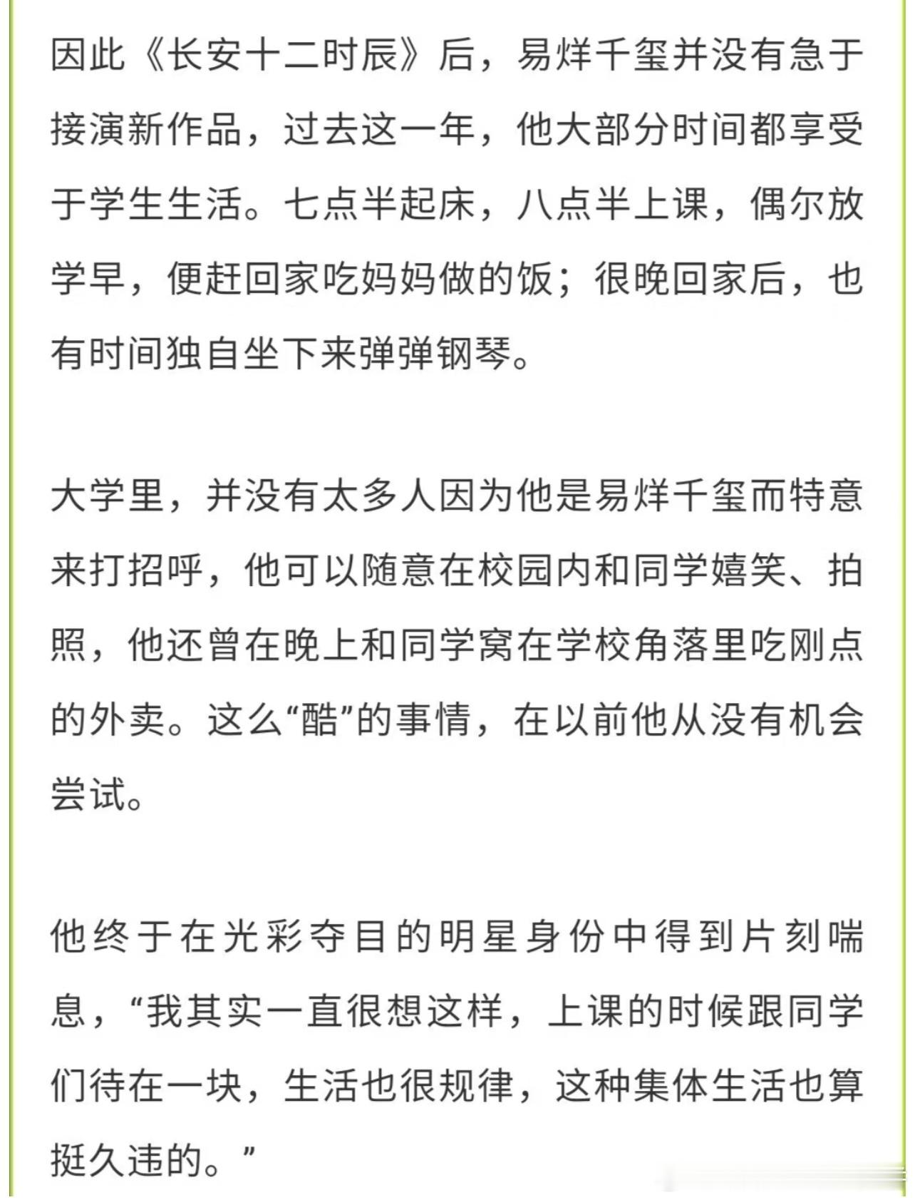 易烊千玺的大学生活,字字句句读过去只想说记录下来的这些瞬间真的都很珍贵