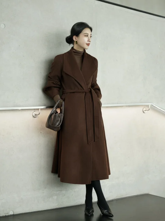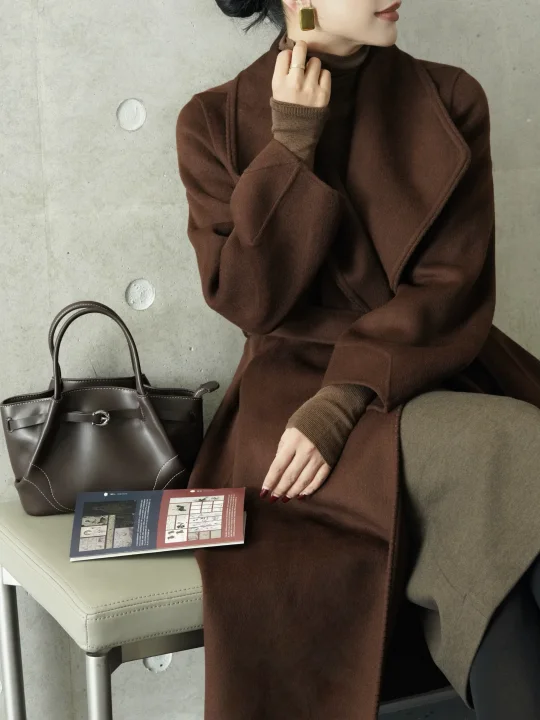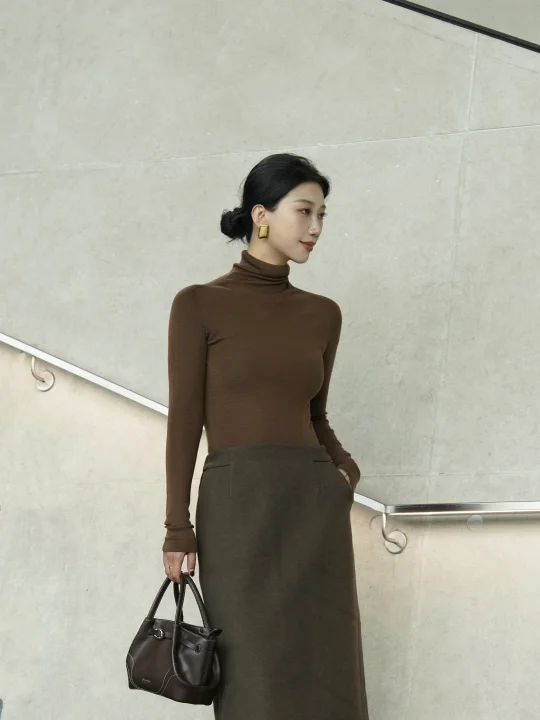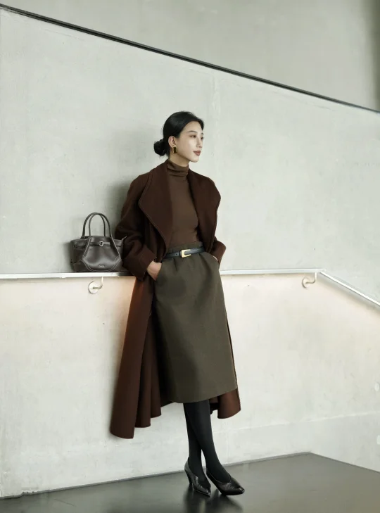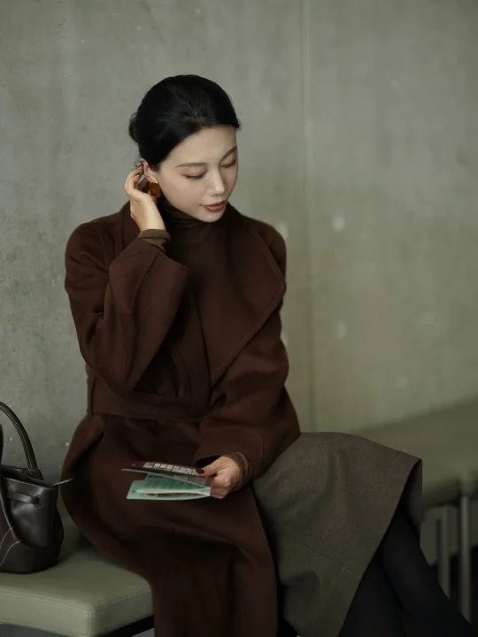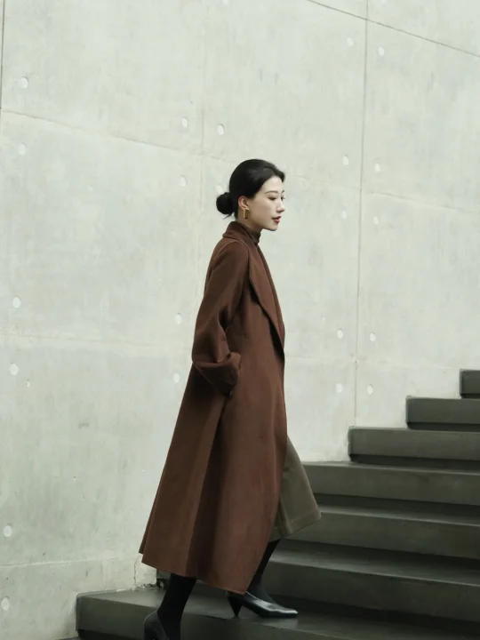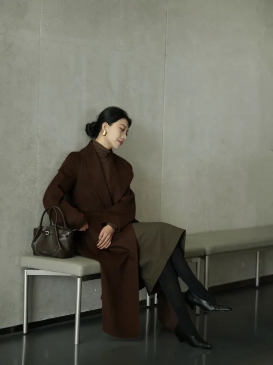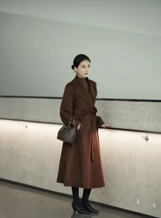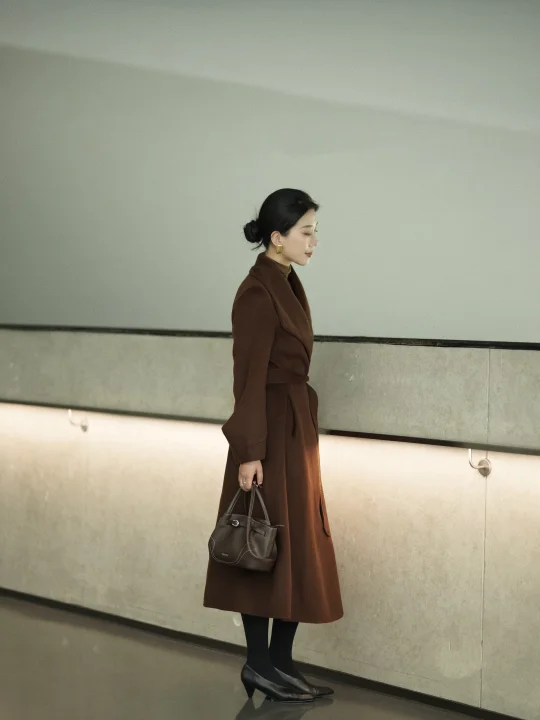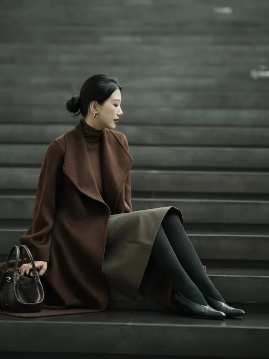 一身深深浅浅的棕,仿佛由时光自然染成,毫无刻意。羊毛贴着肌肤,温暖却不燥;