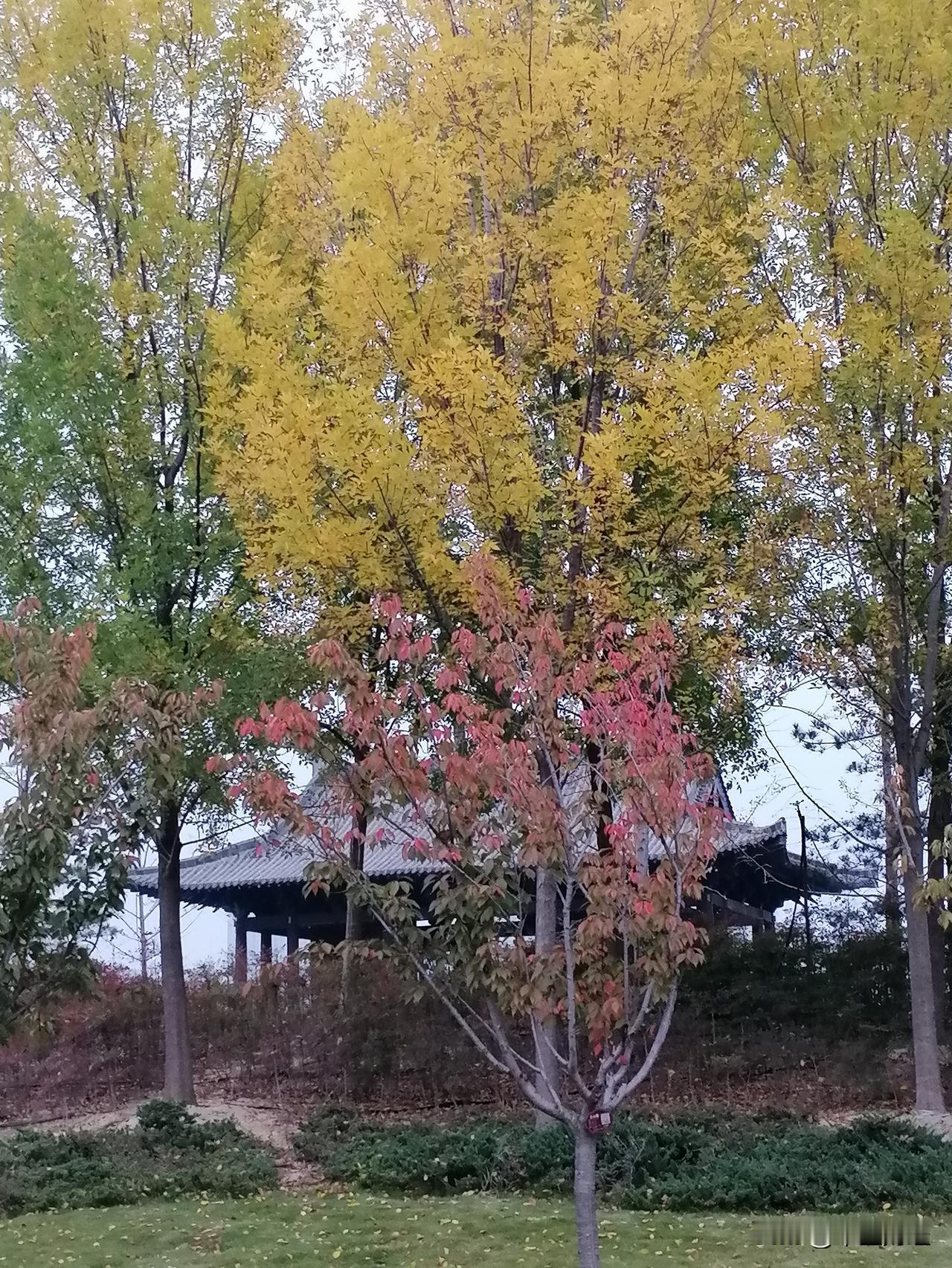 今天是重阳节,看看看看秋日树叶的变化,红黄绿均有啊!