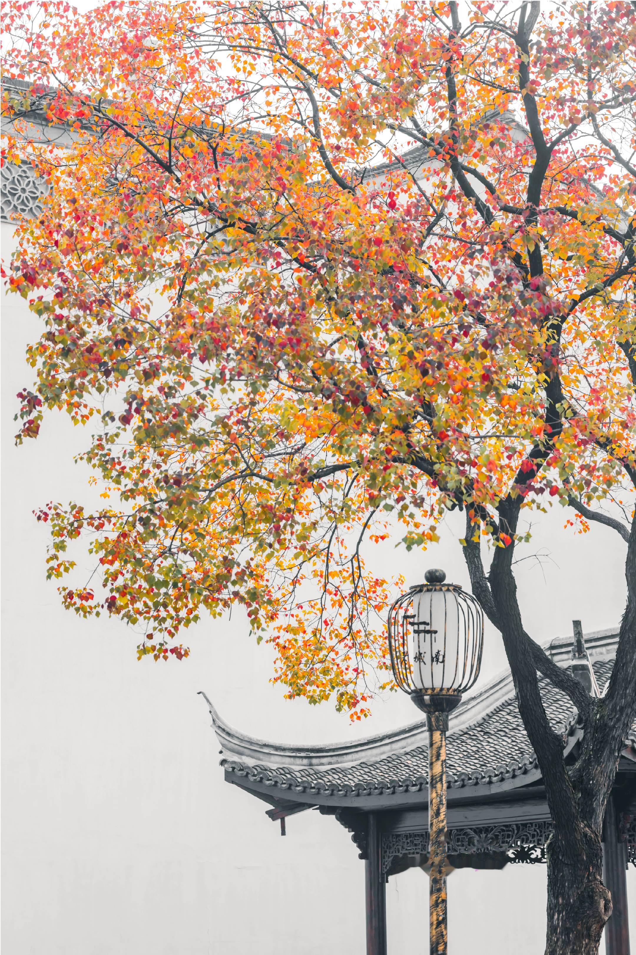 为了这棵乌桕树 11月特地来了趟南京。不得不说,金陵的秋天真的太美了 就这一棵乌柏树已经足够出片了 白墙灰瓦,配上五彩斑斓的树叶 构成了一幅极简又绚丽的秋日画卷 随手一拍都是大片既视感 坐标:南京老门东 (可直接导航至"银兴菲林影城") 观赏期:11月10号到11月底 建议上午8:30-10:30拍摄 这个时段的光真的太绝了 阳光穿过树叶,让叶片变得通透发亮 而建筑背景相对较暗 完美凸显出乌柏树叶的斑斓色彩