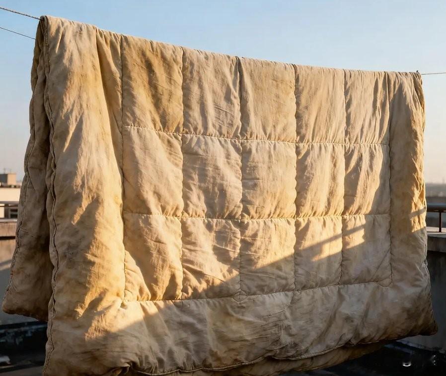 也不知道哪位大神的被子,在楼顶晒了夏天的烈日炎炎,晒了秋天的风高气爽,如今又迎来冬天的寒霜冰雪,它依然在那儿坚持! 我每天上下班都要瞅它两眼,别的被子晒半天就被主人收走了,就它跟扎根了似的。不知道是主人忘得一干二净,还是它自己就不想回家,风里雨里晒了这么久,边角都有点发白了。说真的,它吸收的日月精华比我吃的饭都多,再这么熬下去,我都怀疑它要修炼出点啥来了! 新彊棉
