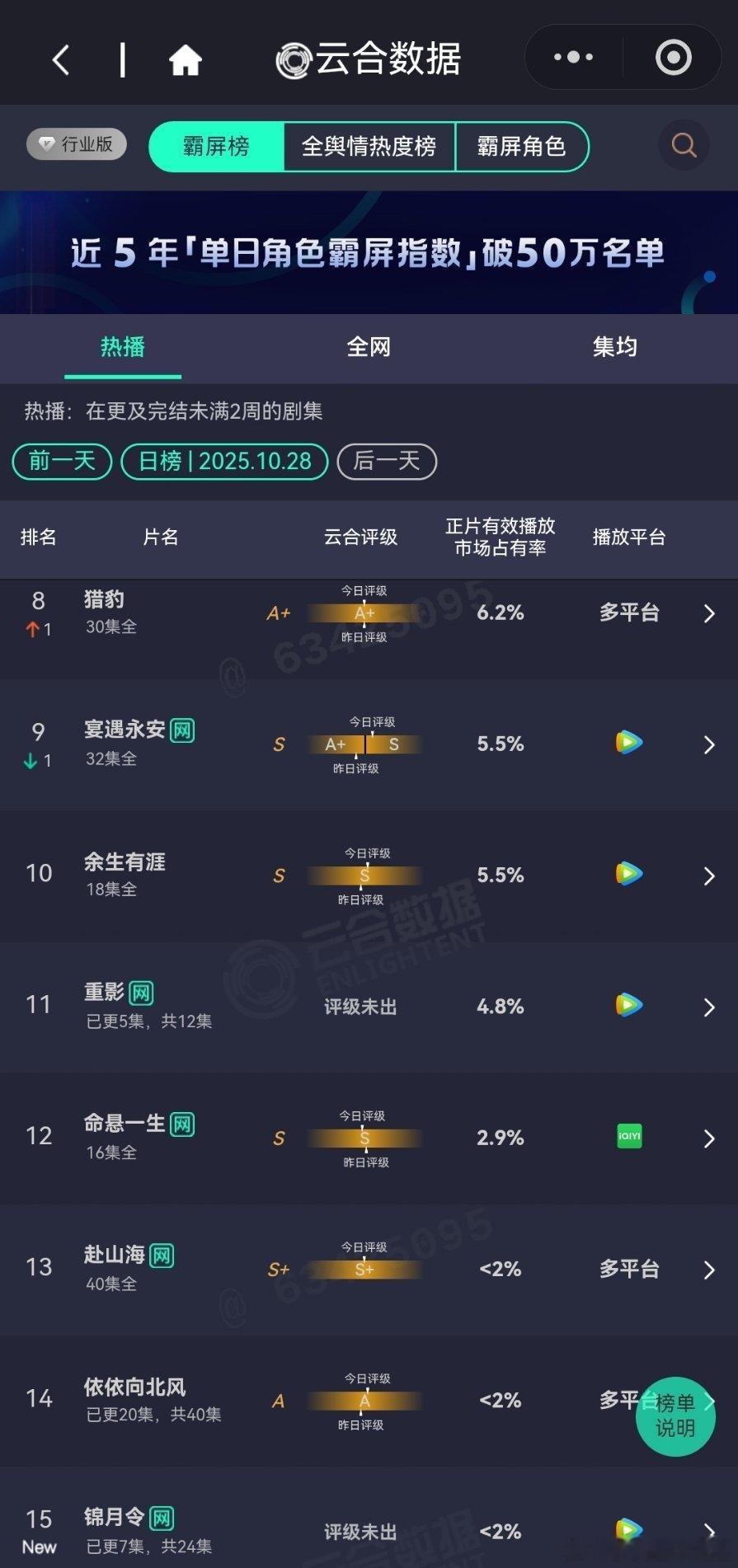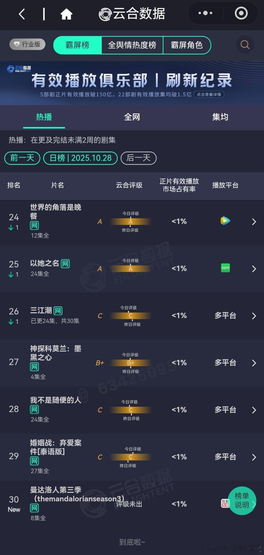 就这个数据表来看,大盘貌似微降了,在播剧弃剧率很高啊