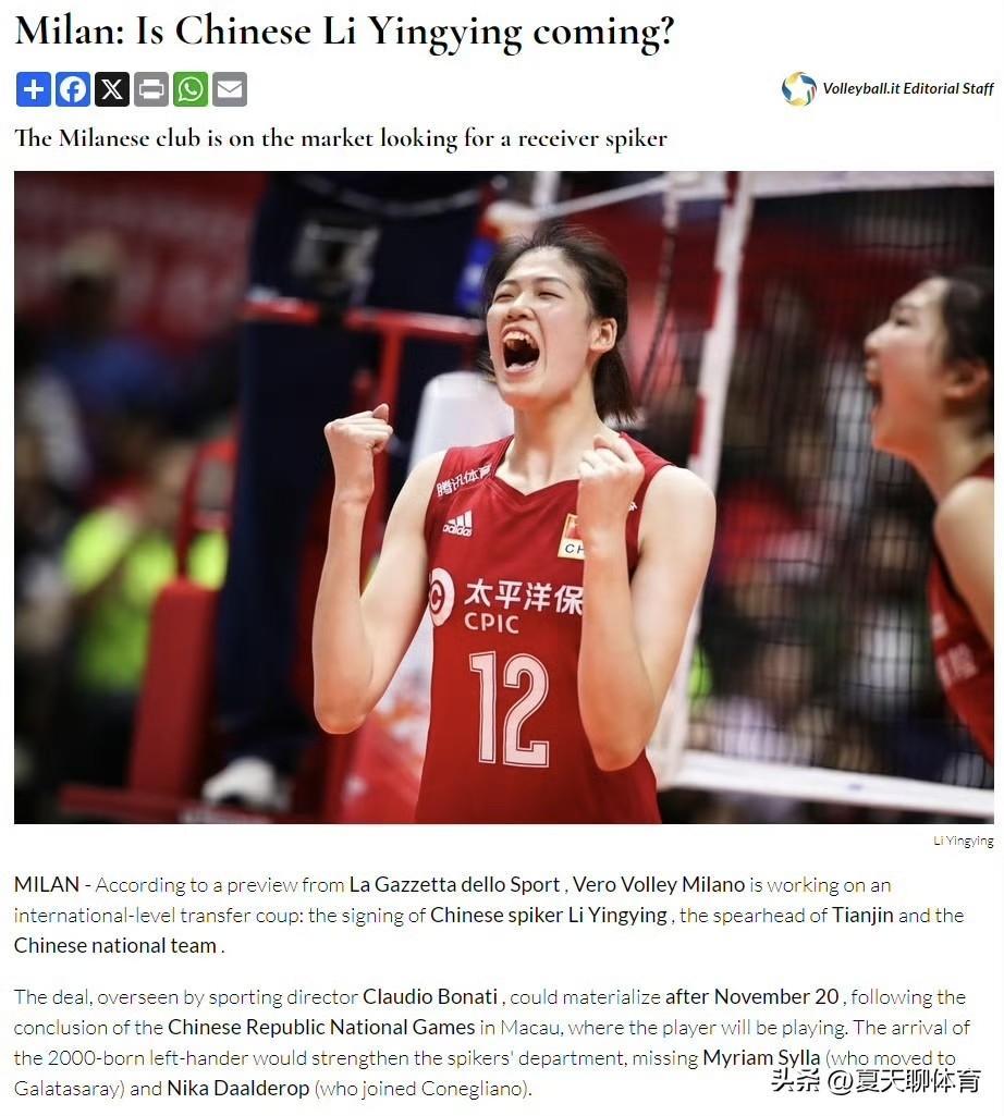 妹妹李盈莹在国外这么吃香吗?又有一家豪门俱乐部准备引援李盈莹,来自意大利豪门俱乐部米兰俱乐部,计划引进来自中国女排的主攻手李盈莹!据外国媒体消息,米兰俱乐部正在跟李盈莹进行商讨!因为球队的另一名外援要离队,其实说实话真的挺合适的,米兰真的缺主攻,目前为止首发的外援就2个,一个是塞尔维亚的副攻手库尔塔吉奇、一个是美国的拉内尔!如果妹妹李盈莹能去意大利打联赛的话,跟艾格努一个队!