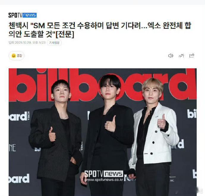 CBX想回到EXOCBX已为EXO空出档期 CBX方表示想回EXO,并已经空出档期。INB100与旗下艺人CHEN、伯贤、XIUMIN计划在短期内促成完整团体活动的协议方案。