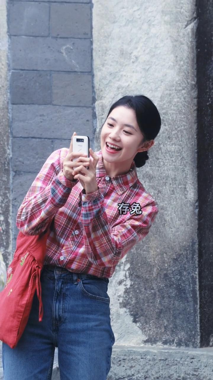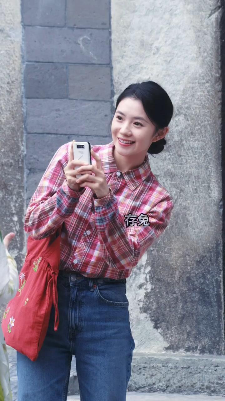 刘浩存《美顺与长生》路透,格子衬衫基础刘浩存的美貌就不基础,笑起来好甜[么么哒]