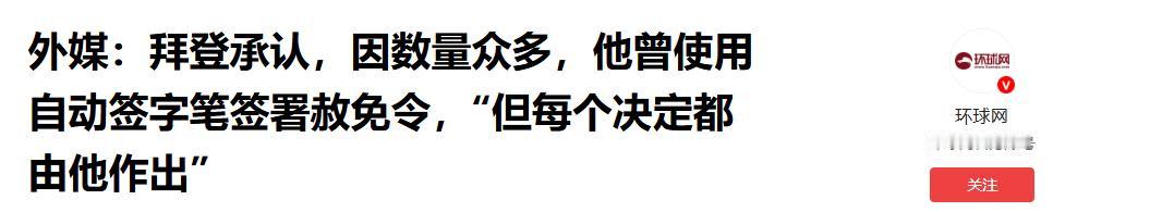 司法部长邦迪正在审查拜登通过自动笔签署的赦免令 起因是众议院一份监督报告突然炸了锅,说拜登用自动笔签的赦免令可能根本不算数。这事儿闹得沸沸扬扬,一边是国会共和党人喊着 “无效”,一边是法律学者说 “没道理”,拜登自己还一口咬定 “每个决定都是我做的”,里里外外透着股美国政坛特有的热闹劲儿。 先得说说这事儿的由头。邦迪之所以突然要审查,全是因为众议院那份报告挑了头。报告里说得挺严重,说凡是没经过拜登亲手书面批准、靠自动签名弄出来的行政命令,都该当成无效处理。这话一出来,邦迪的办公室立马表态要查,搞得好像真发现了多大的违法乱纪似的。但明眼人一看就知道,这背后少不了政治较量的影子,毕竟拜登卸任前那波赦免,得罪的人可不少。 你可能没听过 “自动笔” 这玩意儿,其实就是个能模仿人签名的机器,长得有点像小型打印机,有个机械臂握着笔,照着提前录好的签名样本一笔一划复制,签出来的字跟真人写的几乎没差。 这东西在美国政界可不是新鲜玩意儿,早从上世纪杜鲁门当总统那会儿就有人用了,后来好几任总统都靠它处理那些成堆的常规文件。奥巴马 2011 年还用过它签《爱国者法案》的延期,算是第一个用这机器签法案的总统,当时也没人说啥毛病。 可到了拜登这儿,这机器就成了 “问题工具”。最先挑事儿的是保守派智库传统基金会的 “监督项目”,他们说翻遍了拜登任期内带签名的文件,除了去年宣布退出竞选的声明是亲笔写的,其余全是一模一样的自动签名,赦免令自然也在其中。这说法一被保守派媒体传开,特朗普立马就盯上了,在他自己的社交平台上连着发文,说拜登那些赦免令 “无效、空缺,没有任何效力”,还笃定 “拜登根本没签,甚至对这些文件一无所知”。 特朗普这话听得人一愣,因为他自己也用过这自动笔。后来记者追问,他才支支吾吾说 “只针对非常不重要的文件,比如给年轻人写回信”,还骂拜登用它签赦免令 “可耻”。 这双标劲儿也是没谁了。不过他这么激动也不是没原因,拜登卸任前那波赦免确实戳中了他的痛处 —— 赦免名单里有特朗普的老对头:比如总跟他在疫情政策上唱反调的福奇,退休前骂他 “想当独裁者” 的前参联会主席米利,还有牵头调查 “国会山骚乱” 的众议院特别调查委员会成员,甚至连拜登自己的五个亲属都在里面。明眼人都看出来,这些 “预防性赦免” 就是怕特朗普上台后报复,特朗普自然咽不下这口气,正好借着自动笔的由头发难。 但骂归骂,法律上到底站不站得住脚?这就得说说美国宪法里的规定了。宪法只说总统有赦免权,没说必须亲笔签名,更没提不能用机器。早在 1929 年,当时的副总检察长就写过备忘录,明确说赦免令不用总统亲手签,怎么行使权力全看总统自己决断。司法部 2005 年也有过意见,说总统能用自动笔签立法文件,压根不存在法律争议。 专门写过《总统赦免权》的学者杰弗里・克劳奇就直接泼了冷水,说特朗普喊着 “赦免无效” 根本没法律效力,拜登的赦免不太可能因为用了自动笔就被撤销。还有不少法律专家跟着附和,说众议院报告里 “未经书面批准即无效” 的说法,纯属没找着宪法依据的瞎嚷嚷,毕竟总统每天要处理几百份文件,真要是每一份都得亲笔签,别说干活了,手都得签废了。 拜登这边也没闲着,7 月份接受采访时就拍着胸脯说 “每个赦免决定都是我自己做的”,还解释用自动笔是因为 “赦免令太多了,实在签不过来”。他的助手后来也补充,说拜登是先跟团队敲定赦免的标准,比如哪些罪犯有资格减刑,等名单最终确定后,才让工作人员用自动笔签的,这都属于 “例行程序”,就算中间名单有小改动,也不用每次都让总统再签一遍。面对特朗普和共和党的指责,拜登更是直接骂他们 “骗子,就是想转移焦点”。 有意思的是,传统基金会那所谓的 “调查” 本身也站不住脚。主流媒体后来扒出来,他们分析的根本不是纸质文件原件,只是电子扫描件,光看数字签名根本没法确定是不是自动笔签的。而且拜登签那些赦免令的时候,虽然有时人在外地,但白宫有明确记录显示他提前批准了内容,这跟宪法里 “总统本人决策” 的要求完全对得上。 现在邦迪的审查还在进行中,但不少人已经猜透了结局。毕竟从杜鲁门到奥巴马,这么多总统用过自动笔,从没听说哪份文件因为这个被作废。司法部自己 2005 年就定了调,现在总不能自己打自己脸。更关键的是,美国宪法把赦免权给得相当宽松,除了不能赦免弹劾案和州级犯罪,总统想赦免谁、怎么签,基本没人能拦着,这也是为啥说总统赦免权 “几乎不受限制”。