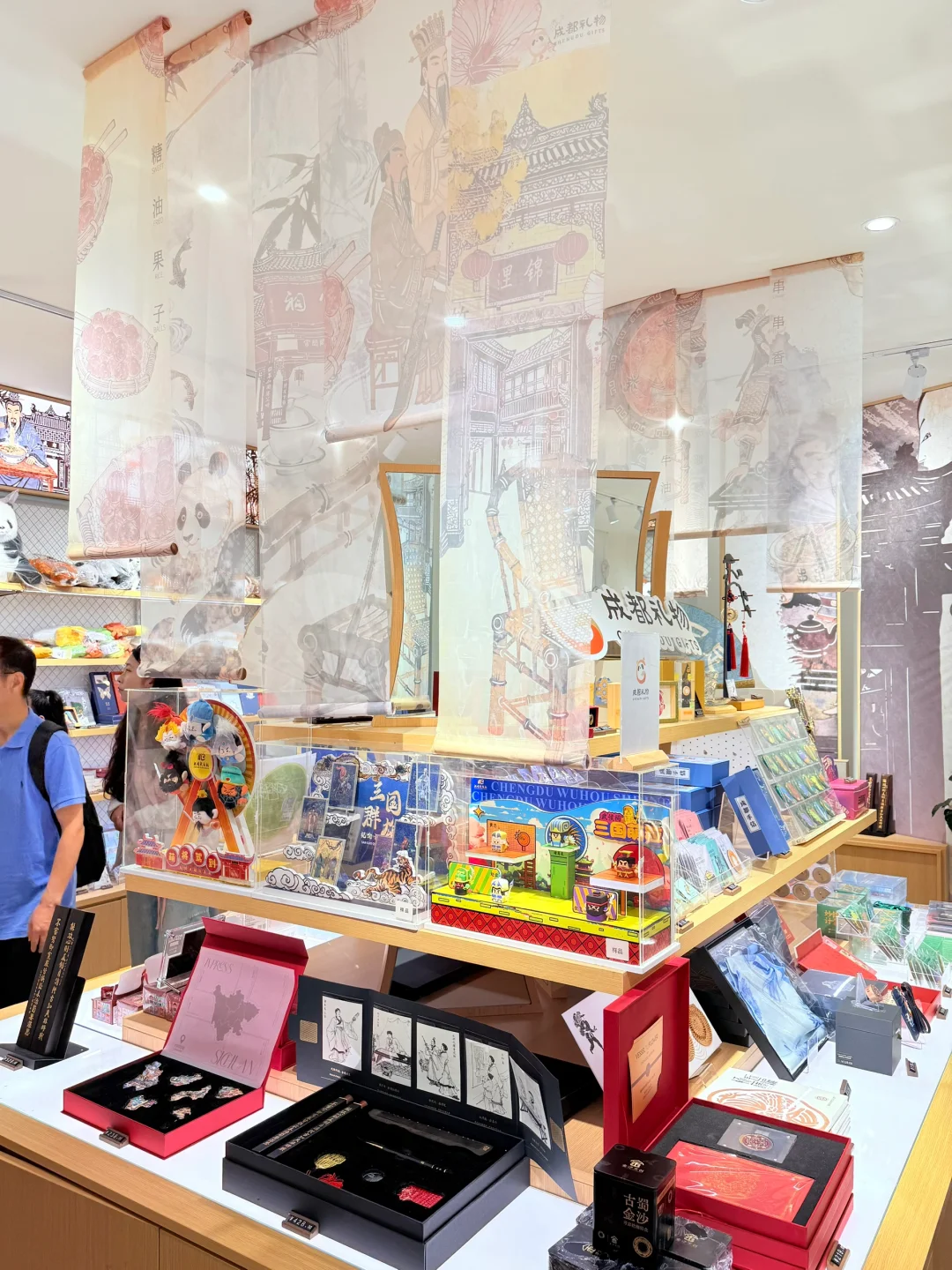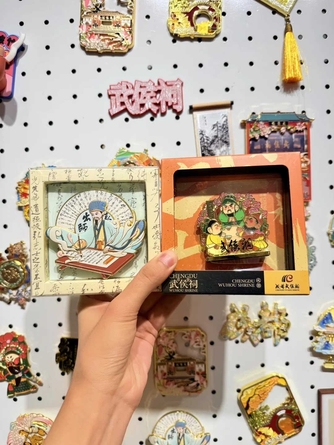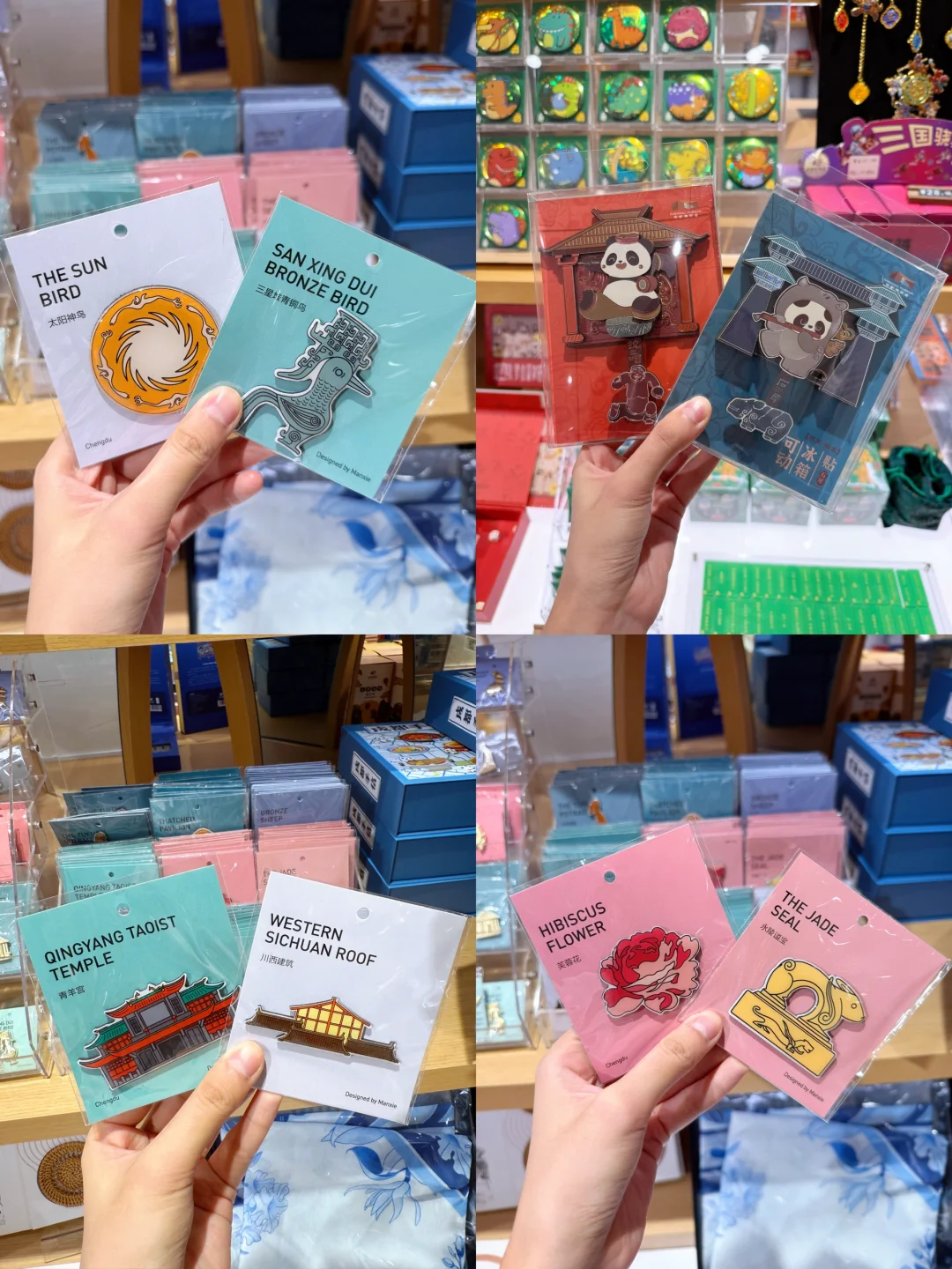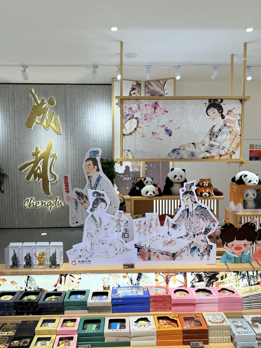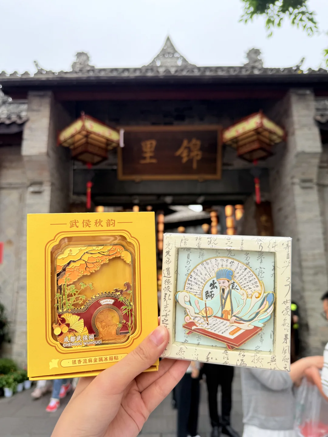 买到了!买到了!! 就在锦里门口 巨巨巨乖的伴手礼……送给朋友都被夸疯了 变脸系列冰箱贴!我是真的爱啊!!! 而且店里还有各种各样的小玩意儿 毛绒熊猫、茶叶、冰箱贴、盲盒、摆件…… 超有成都特色!! 大家离开成都前!!一定要来逛 就在锦里正门进去右手边!!!