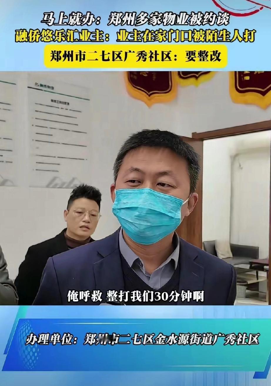女子在家门口,被四个大汉扒衣服拖到卫生间打了30分钟。物业:超出物业管控范围,别说四个人就算一个人我们也无权阻止打。社区:已约谈物业整改。(来源:百姓315)物业是否有义务救助业主人身安全?大家怎么看?