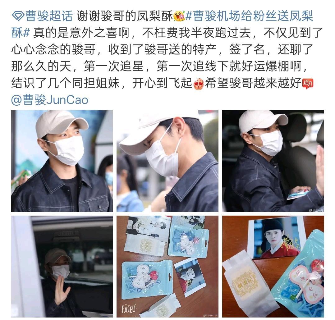 曹骏机场给粉丝送凤梨酥也没人和我说曹骏粉丝吃这么好啊!!和粉丝相处像朋友一样!!
