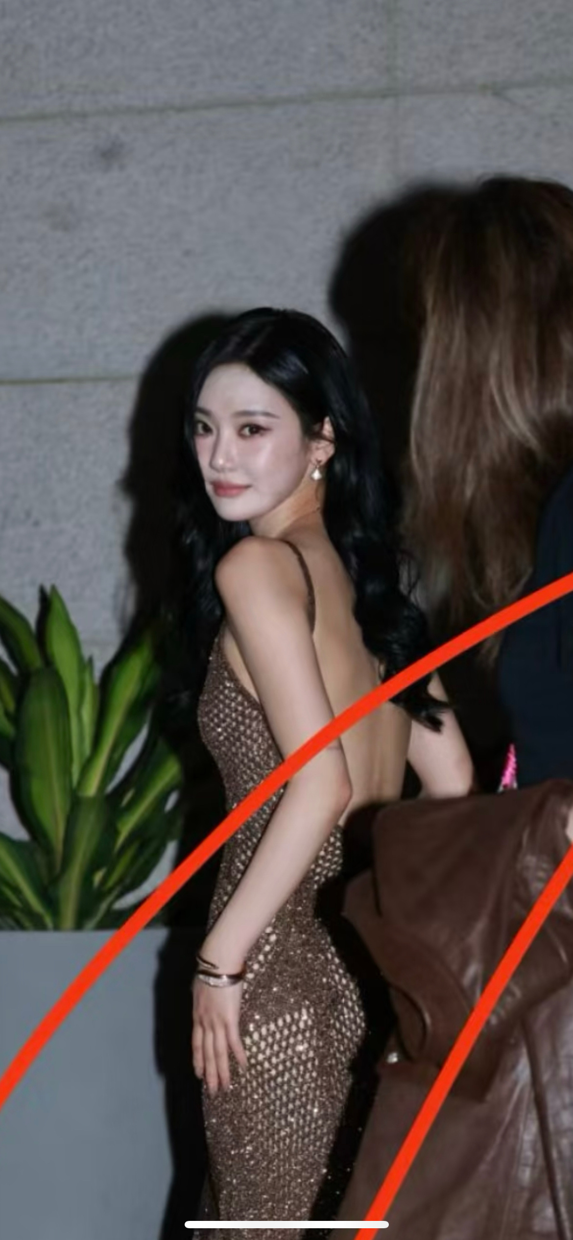 张天爱跟素人合影,胯真的好宽,大宅院似的