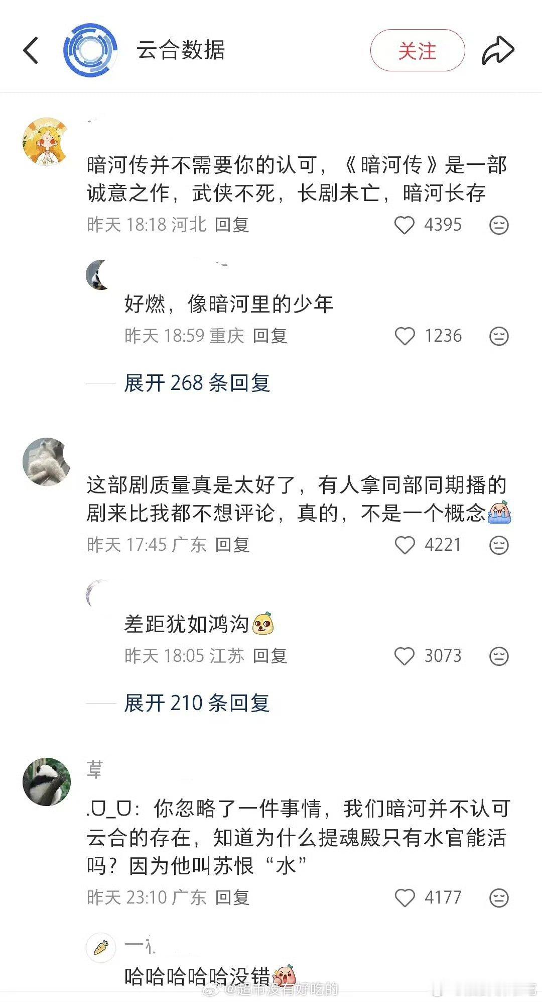 云合各个平台评论区都沦陷了暗河传 云合评论区