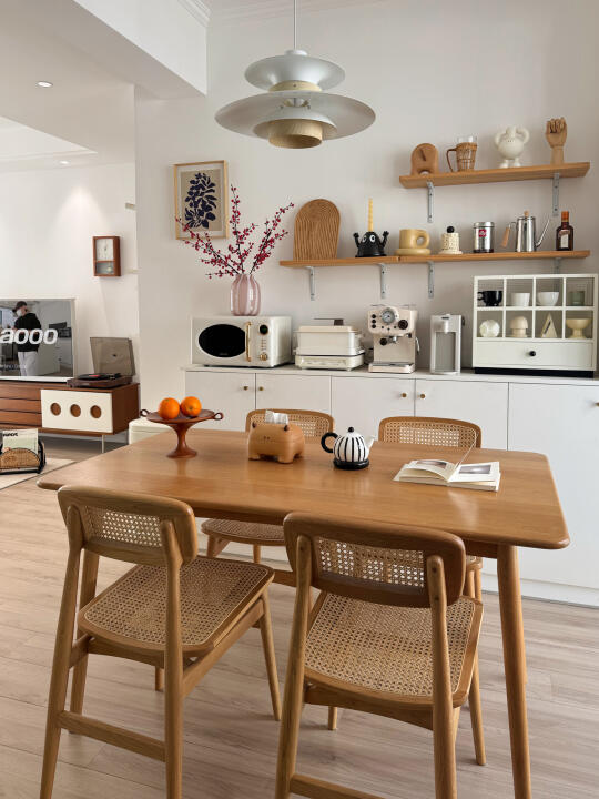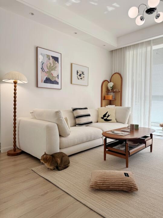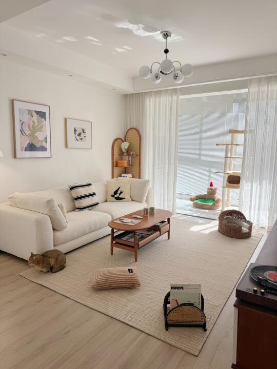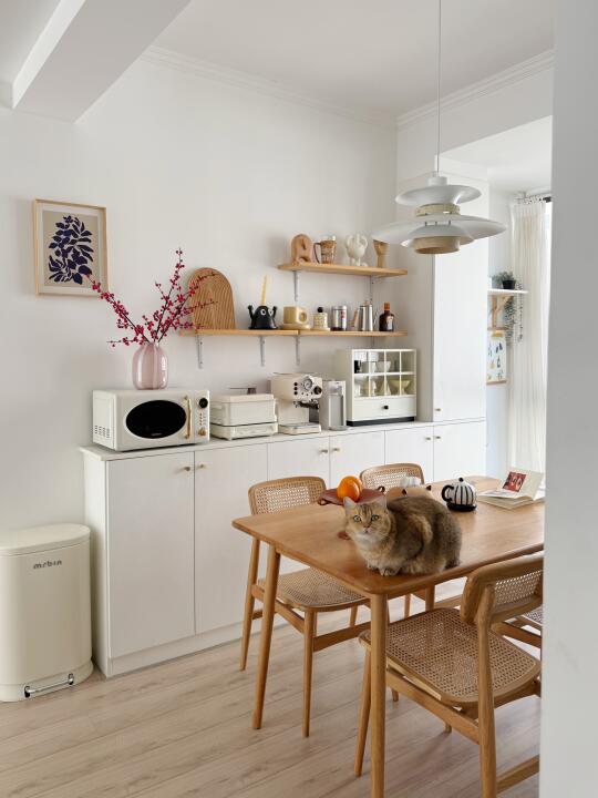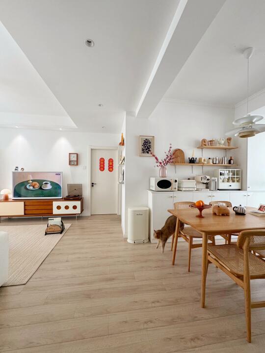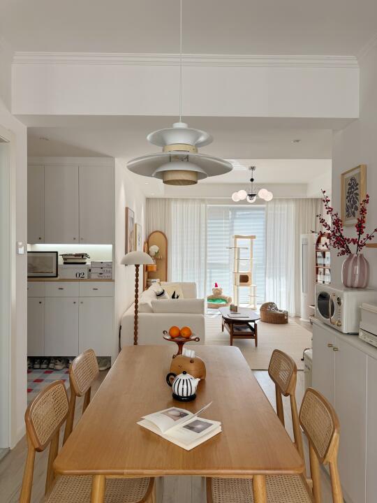 几年前自己倒腾的小家,预算有限没请设计师,自己设计硬装从简,入住第五年了,依旧是我的Dream House~ 客餐厅简单吊顶,四周射灯,中间装ins魔豆吊灯,再搭配台灯落地灯,灯光让家温馨有氛围感~ 30+ 有个属于自己的小房子真的超幸福,一个人住不用考虑其他人的想法,陆陆续续把喜欢的家具搬回家~ 我的家没有固定的风格,但我也挺喜欢,普通人的小房子干净温馨就挺不错哒~