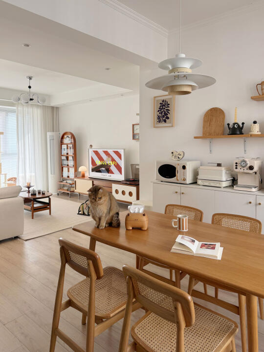 普通人的70平小家,虽然面积不大,但一个人住超开心~ 每天只想宅在家,打开音乐电台和ins魔豆吊灯,灯光和音乐让家氛围感满满~ 宅家的时光,听着歌,晒着太阳,撸着猫,这样的生活超满足~ -