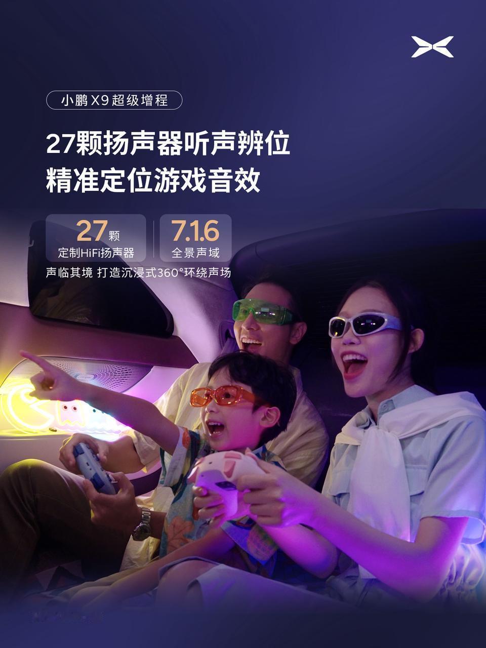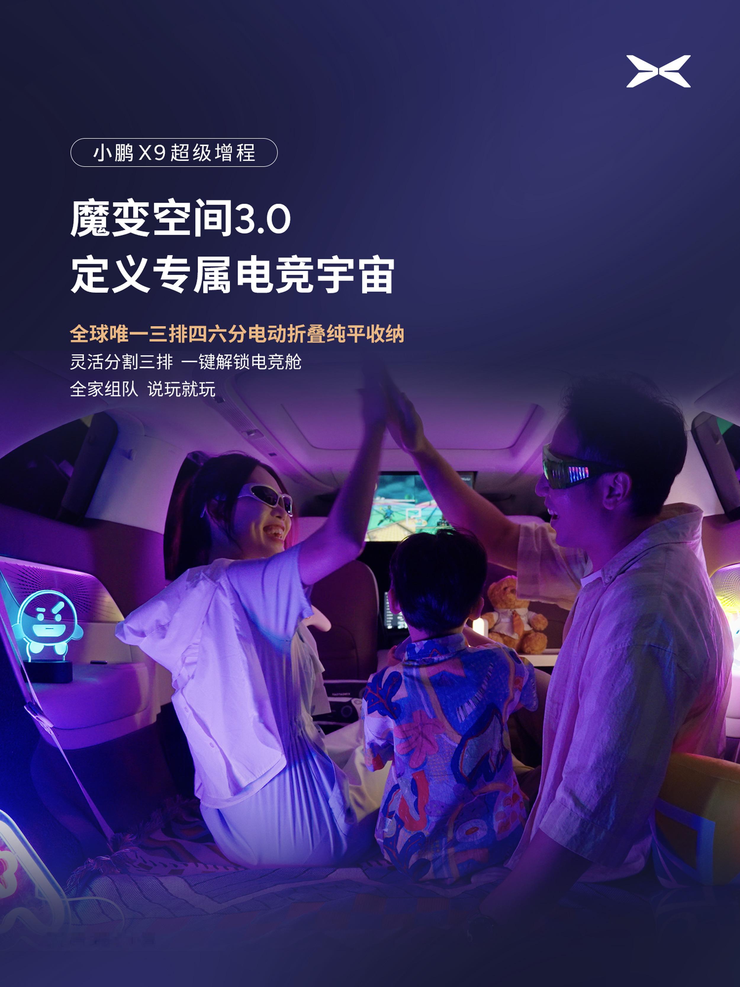 小鹏X9超级增程魔变空间3.0,车内秒变开黑主场。