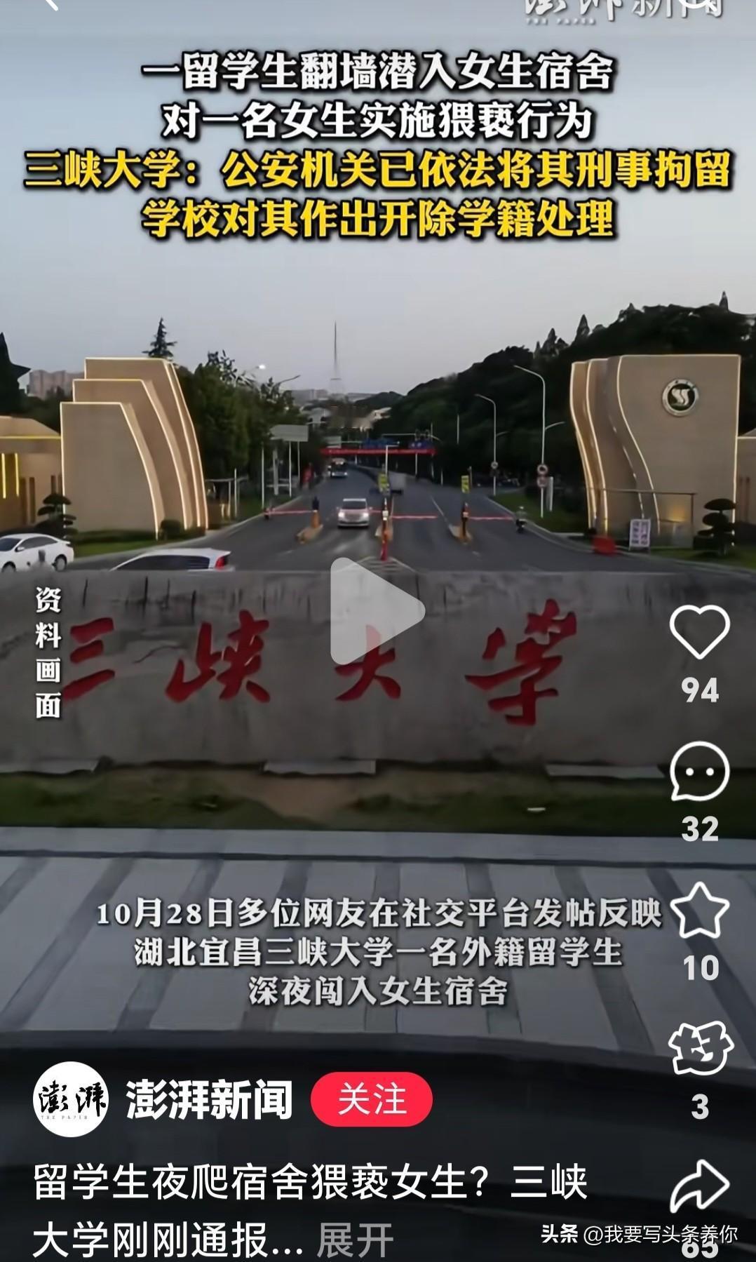 终于明白为什么大学无度扩招 留学生的问题藏不住了 留学生半夜爬楼闯女寝,这种新闻看了让人心里发凉。学生送进学校图个安全,结果遇到这种事,家长怎么能放心。 问题根源在于有些大学为了国际化排名,不顾一切扩招留学生。一年引进几百人,连语言基础都不考察,直接塞进课堂。老师上课吃力,本国学生受影响,有的甚至被迫转学。所谓的国际化成了面子工程。 更让人想不通的是区别对待。给留学生提供高额奖学金、优越住宿,本国学生反而享受不到这些。这种双重标准无形中助长了某些留学生的特权意识,觉得可以凌驾于规则之上。法律明明规定外国人在中国犯罪必须同等处罚,可现实中总有人把涉外事件特殊化,处理起来拖拖拉拉。 三峡大学事发后忙着在二楼加装铁丝网,这种事后补救固然需要,但早该把留学生的法制教育和管理当回事。高校安全不能总等出了事再补救,平时就该一视同仁,严格管理。 大学的价值在于育人,不是拼排名数字。放弃质量追求数量,最终只会损害所有学生的利益,也辜负了社会的信任。