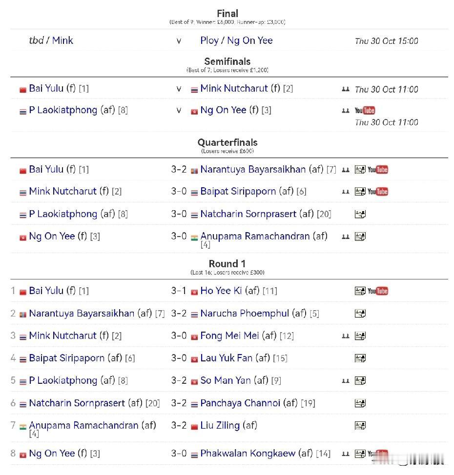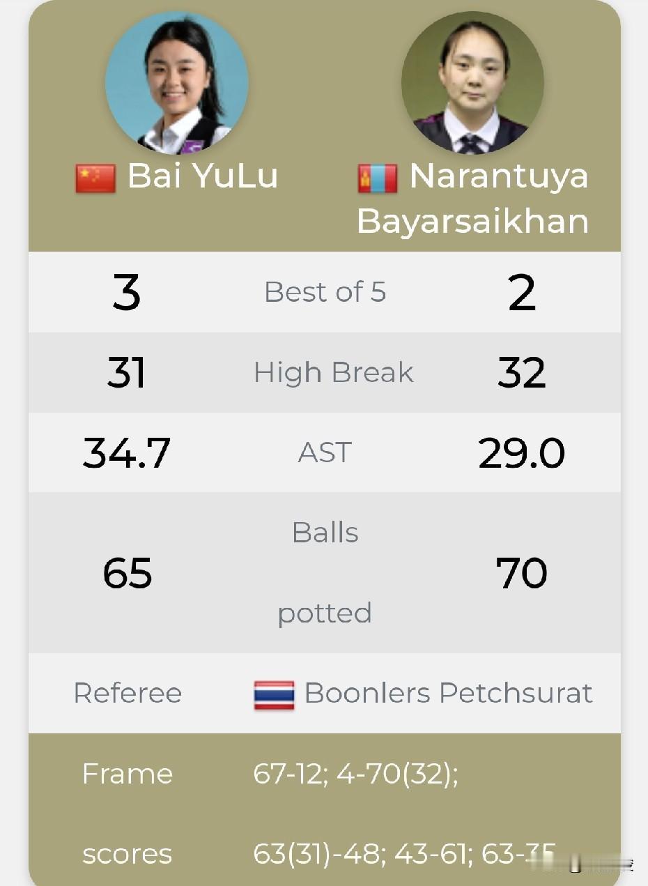 女子斯诺克公开赛4强产生,白雨露、旺哈鲁泰、吴安仪、劳基亚特蓬入围,白雨露赢得非