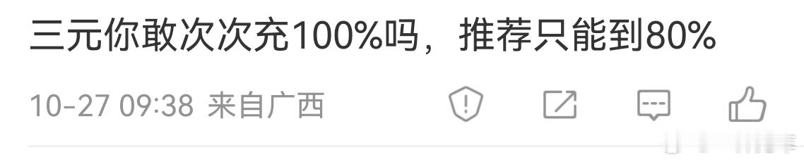 最近又有人扯什么三元锂平时不能充满,这是彻头彻尾的以讹传讹。三元锂当然没必要次次充满,而相反,磷酸铁锂电池通常要求一两周必须充满一次来校准电压,如果使用频率低,反而往往需要充满。