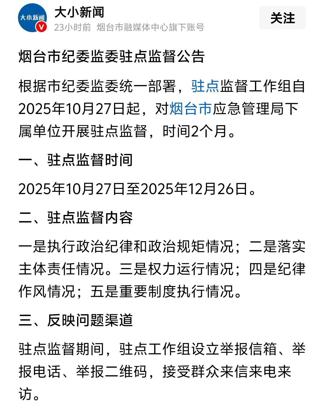 近日烟台纪委监委对烟台市应急管理局下属单位开展驻点监督,时间2个月。这是很好的,我觉得应急管理局最应该好好巡视监察的就是消防救援部门! 小时候我一直以为消防队主要工作就是灭火,其他没什么职责,后来才知道消防部门还有消防审批、监察等权利,每个小区每栋楼每个建筑物都需要通过消防检查才行,这就容易引发腐败,以前消防属于武警序列,很多问题可能地方上也没法去插手,但是如今划归地方了,就应该考虑从军改后划归地方开始到现在为止进行倒查,想必一定是会有收获的!