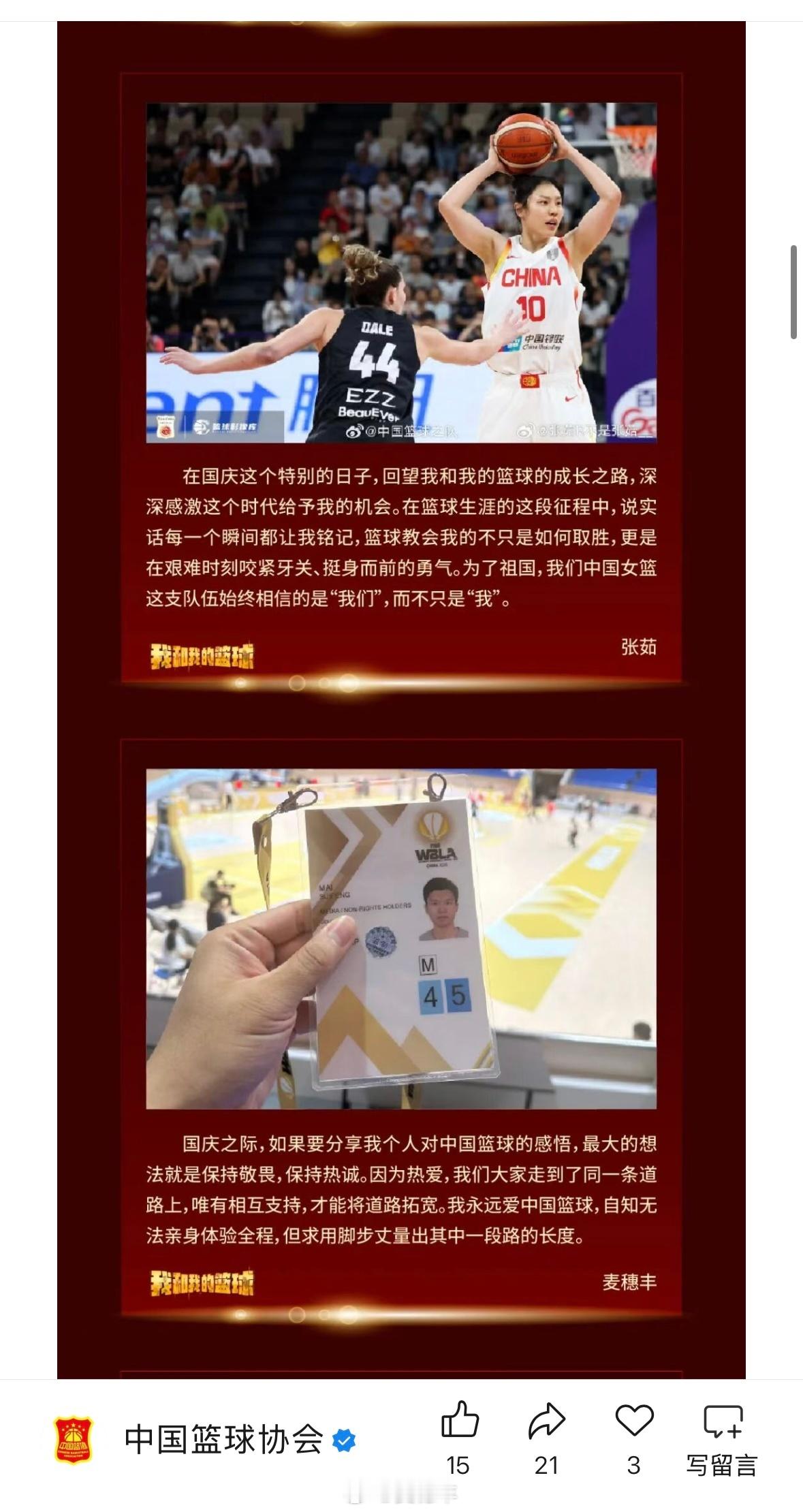 我写这个的时候也就是凑个热闹,没想到篮协真给我发上去。谢谢,很荣幸能跟张茹靠得那么近,我一直很喜欢她。[doge]