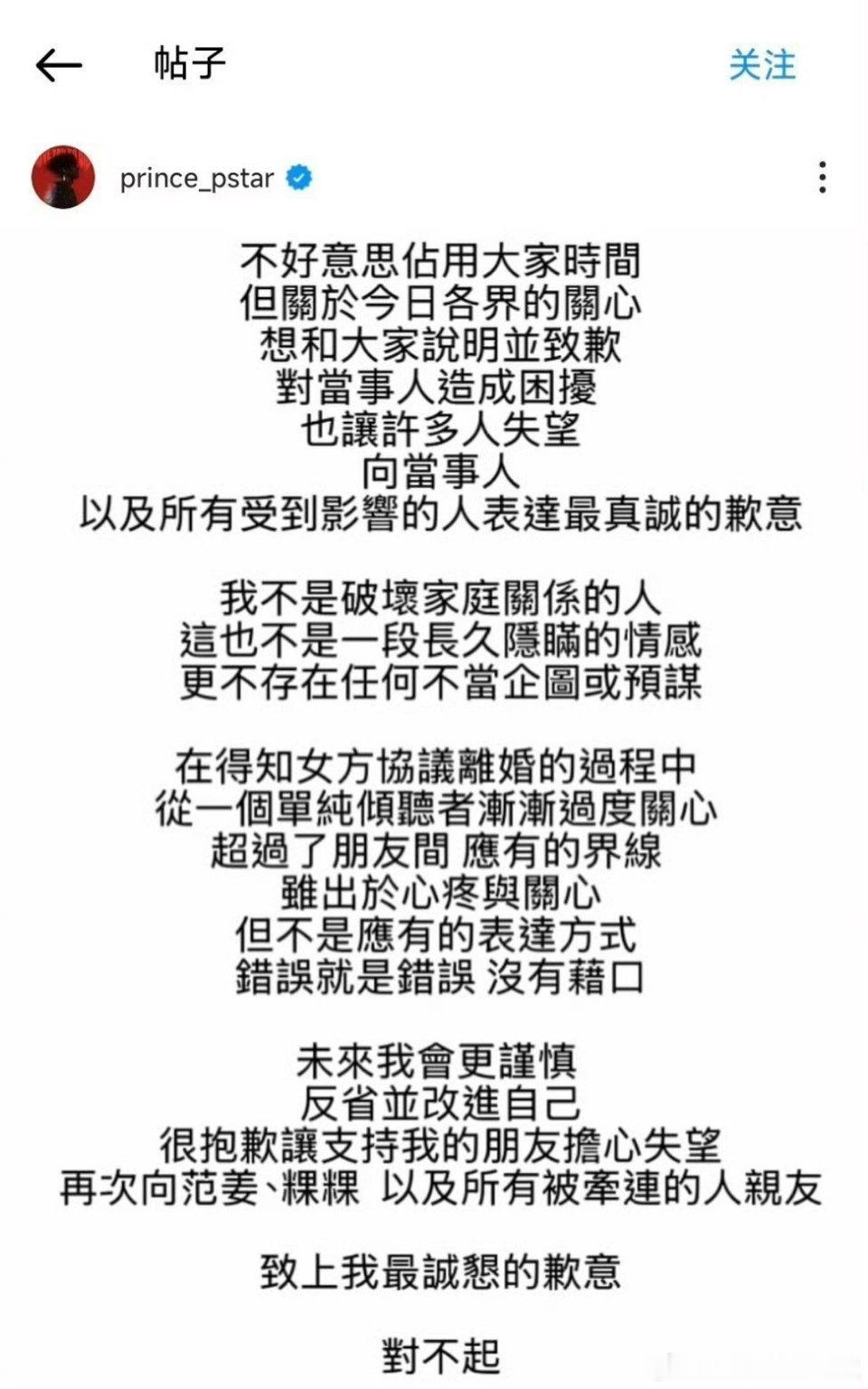 王子发文道歉鬼鬼回应王子插足他人婚姻