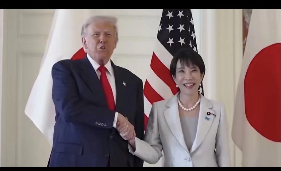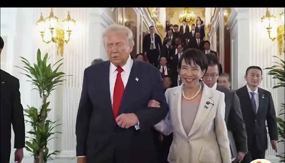 铛铛铛,铛铛铛铛。 特朗普一脸嫌弃的样子,像帅哥被吃了豆腐一样,而高市早苗,嘴都笑歪了,像那些追星精神小妹一样,遇上了自己的偶像。