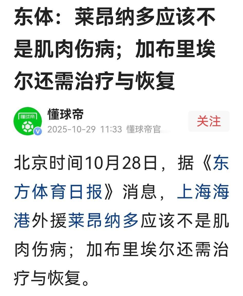 海港vs浙江大战在即,《东方体育日报》报道海港外援伤情,我怀疑是放烟幕。 这个报道没消息来源,说莱昂纳多“应该”不是肌肉伤,加布里埃尔“还需治疗和恢复”,疑为猜测。沪媒帮里不帮外,对海港双外援做伤情“泄露”,不太合常识,更像为迷惑对手。 不来虑江湖因素,浙江虽然少了王钰栋,但有外援三又戟,米特里策、卡列洛、奥乌米攻击力不俗,而海港若没加布里埃尔和莱昂纳多,不太好猜胜负,冠军的争夺可能要留到最后。