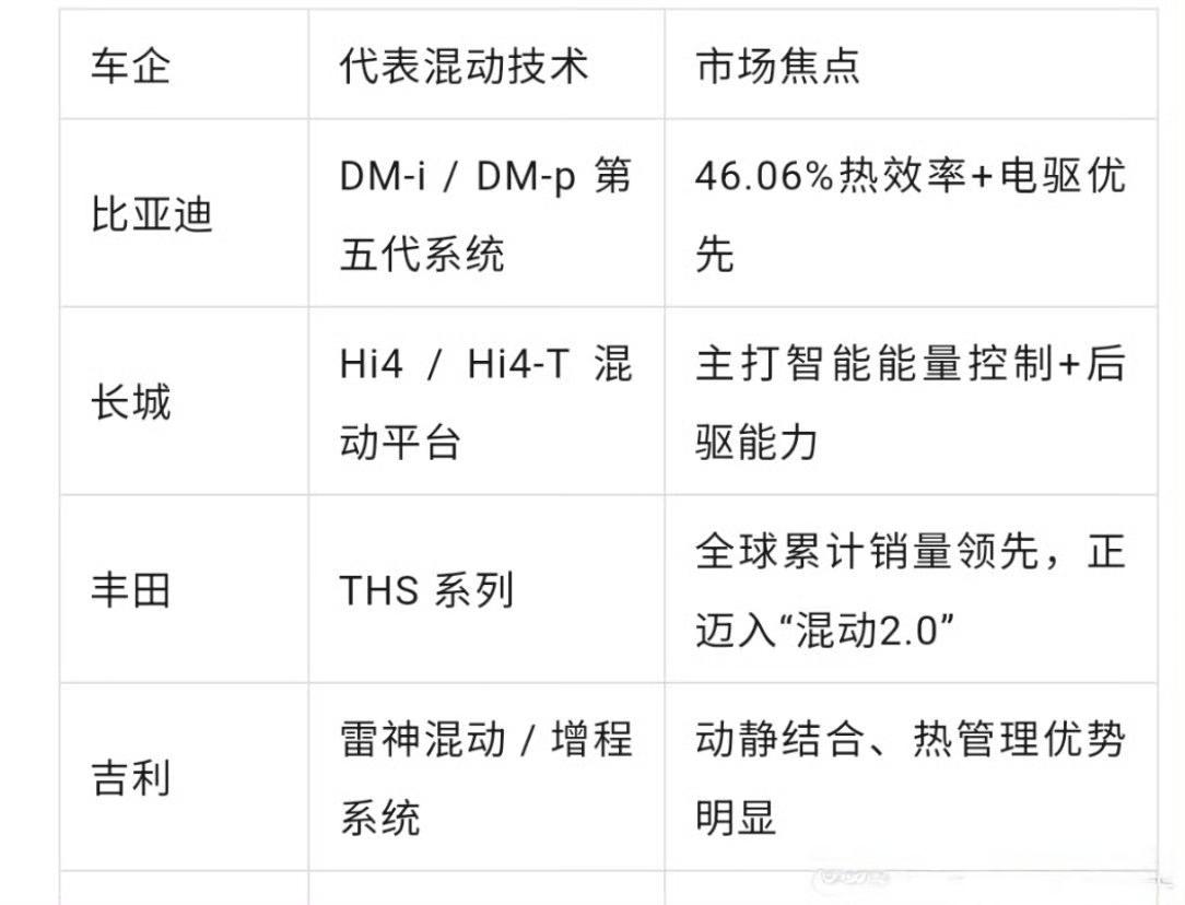 有朋友问我,馋新能源,又担心电池安全问题,该买什么车? 我的建议是: 小电池插混正适合你。 我的理由是: 1,无论是单档还是多档的插混,他们都可以发动机直驱,几乎没有亏电动力衰减的问题。增程,只是这种串并联插混的一种模式而已,他可以是电车,也可以是增程,也可以是油车。 2,小电池,一般30度以下,风险可控,问题不大,担心电池安全的人不用提心吊胆。 3,小电池插混。你得把他当做油车开,这是最重要的!! 当做油车开,他就是油耗非常低的油车,节能效果超群,推荐看看长城的Hi4,比亚迪DMI,吉利雷神混动,都可以,油耗最低可以做到百公里2L。 4,小电池插混,全场景的智驾都是可以实现的,电车能干的他都能干。 5,不推荐买小电池增程,很容易陷入频繁充电的怪圈,发动机不是增程的动力源,频繁充电很麻烦。 买增程就得买大电池! 你们看看有没有道理?【来自懂车帝车友圈】