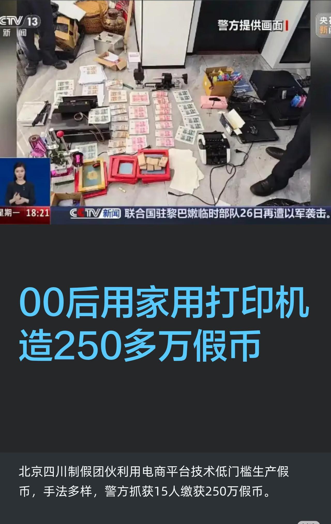 00后孩子们,你们用境外软件学技术,拿家用打印机印假币,还想着虚拟币结算能瞒天过海,结果15个人全被抓,8个窝点被端,250多万假币全缴获,这哪是聪明,是糊涂。 你们能摸索出做旧、调票面这些技术,学习能力多强啊,要是用在学门手艺或者做点正经生意上,现在说不定已经靠本事赚钱了,哪至于让家人跟着揪心。 这么聪明的脑子,用在正道上该多好,非要碰法律红线,图什么呢?