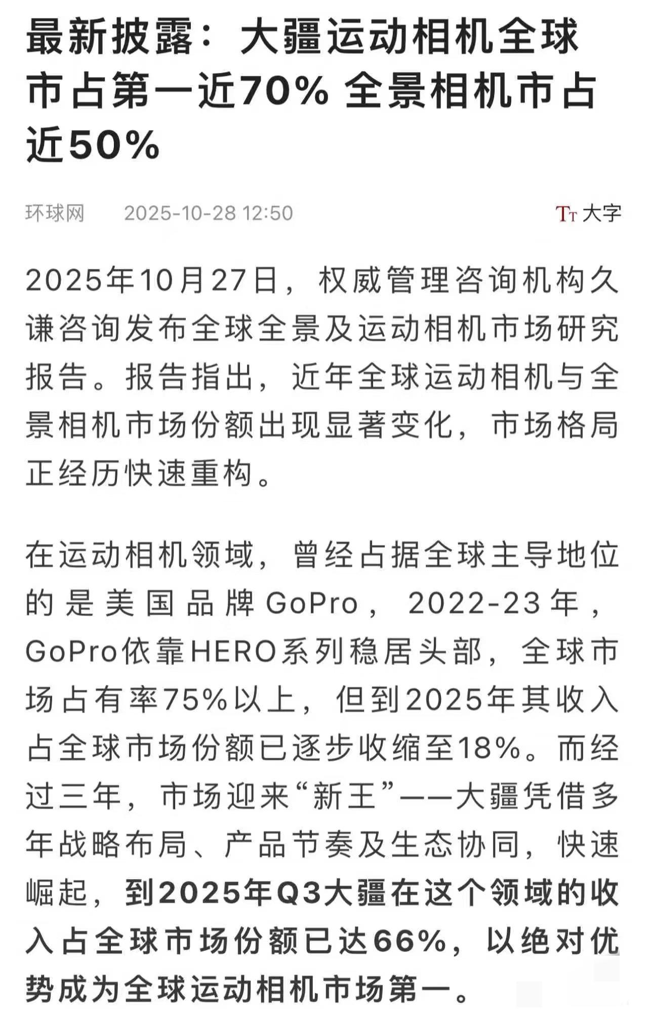 这个发展速度,大疆是开了挂吗? 看到最新数据惊呆了:大疆运动相机全球市占登顶,刚推出不久的全景相机也拿下了近半市场。这发展速度,真的让人看到国货的崛起之势。
