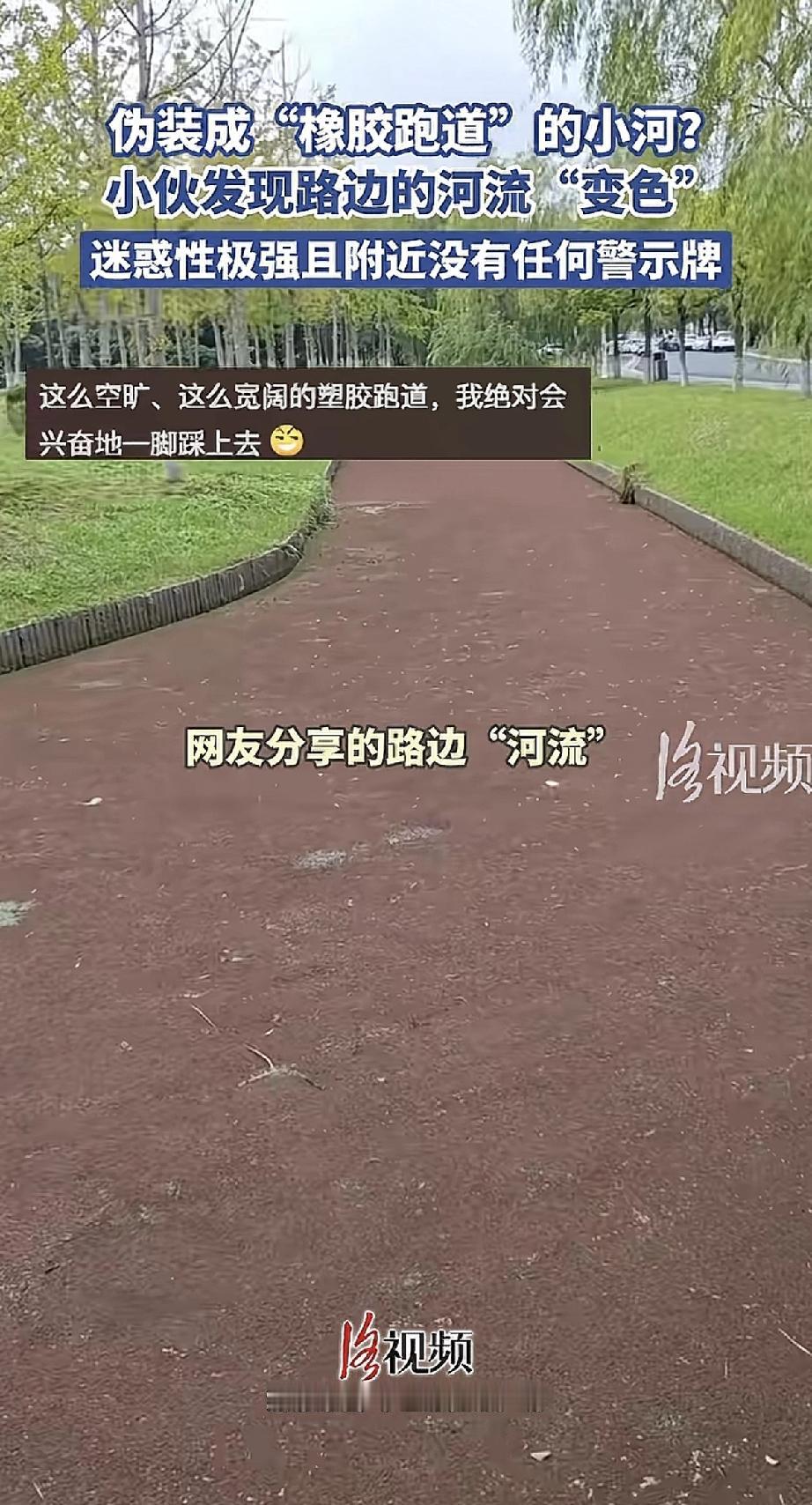 这伪装也太绝了!一条小河被浮萍覆盖得严严实实,颜色和质感看起来跟塑胶跑道一模一样。 小伙路过时差点一脚踩上去,幸好发现水面在反光。这么强的迷惑性,周围却连个警示牌都没有。 网友直呼后怕:要是我绝对兴奋地冲上去跑了!这要是没看清,后果不堪设想。希望相关部门能尽快设立警示标志,避免意外发生。