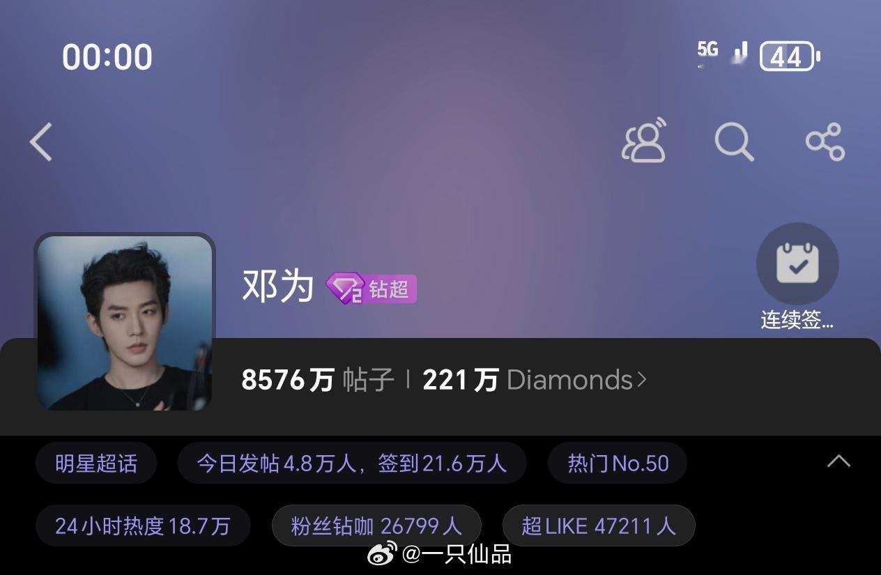 邓为昨日超话发帖4.8万+,超like4.7万+