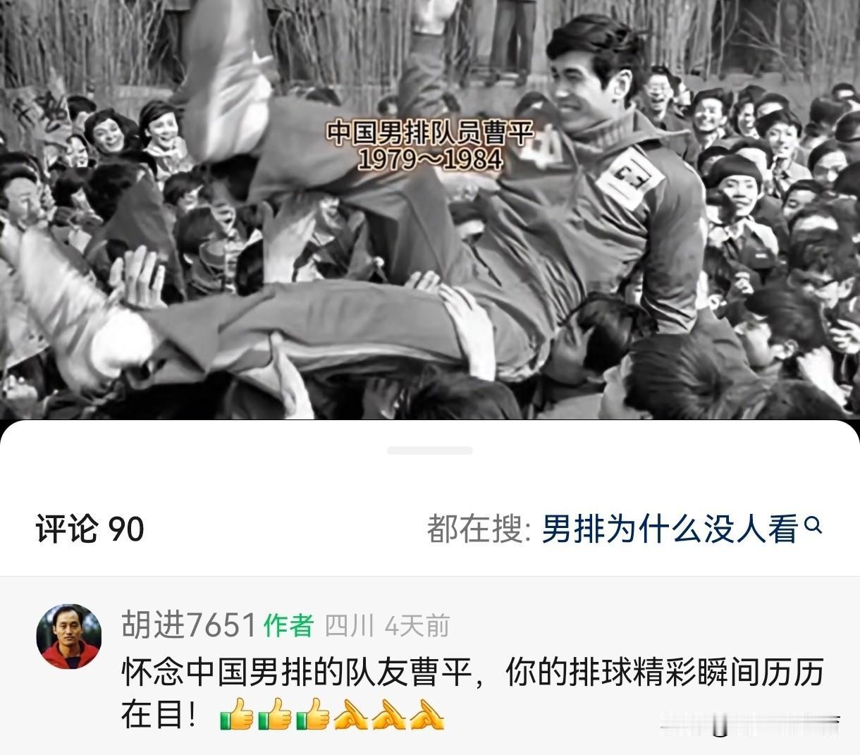 “团结起来,振兴中华!”——80年代青年人立志报国的行动宣言,已成为一个时代集体记忆的价值标签。而当下很多人并不了解的是,缔造这八字宣言的荣誉之师正是在1981年3月20日以3-2大逆转击败韩国队进军世界杯的中国男排。遗憾的是,当年创造了传奇的主力副攻、被北大学子们抛向空中庆贺胜利的男排名将曹平已于前几日在美国病逝。曹平的昔日队友、中国女排前主教练胡进悲痛不已,在朋友圈发布了“怀念曹平”的视频。斯人已逝,但他的名字与他们集体所创造的辉煌与传奇一样,永远闪亮。“团结起来,振兴中华!”一代青年发自肺腑的口号,时至今日,依然铿锵有力。我们缅怀曹平,也应当铭记那个集体,他们是:主教练戴廷斌,队员汪嘉伟、沈富麟、曹平、邸安和、胡进、徐真、王铁山、张仁江、侯杰、陈刚、李建新、侯晓非。