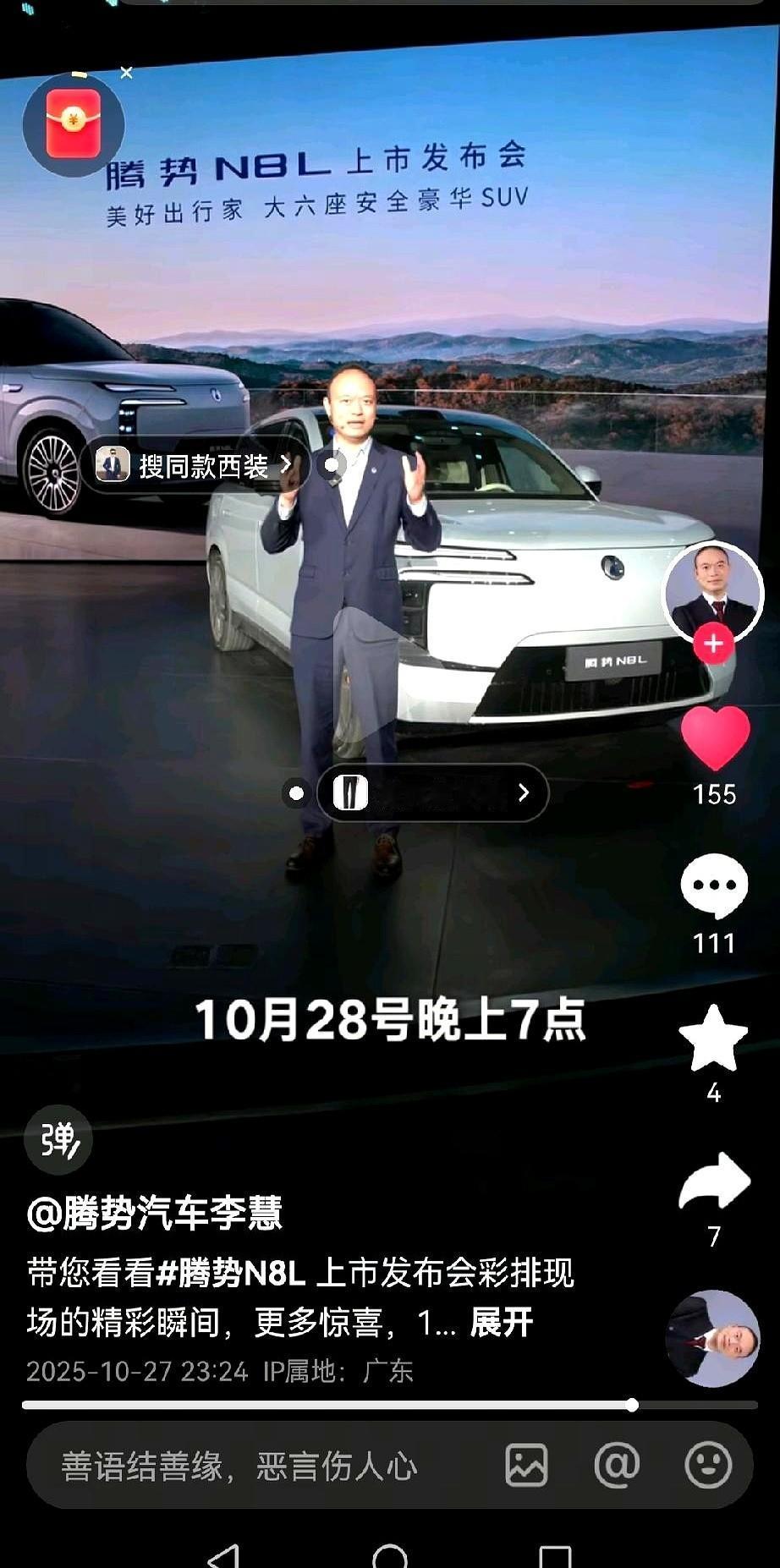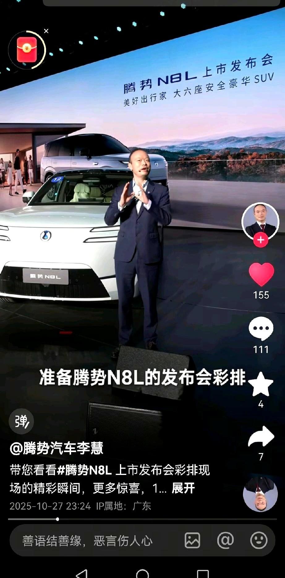 老板刚下课。 据说,腾势再卖不好,下一个就轮到她,李慧。 结果今晚7点,新车发布会,主持人,还是她。 你说她心里慌不慌?我觉得换我,腿都软了。灯光一打,底下黑压压全是人,网上几百万双眼睛盯着你,背后是刚空出来的老板的位子,和自己摇摇欲坠的椅子。 这才是职场最真实的样子,根本不是什么光鲜亮丽的PPT和Title。 你前面的人倒下了,你不能多看一眼,马上就得补上他的位置,而且要干得更好。因为后面还有一堆人等着补你的位置。 你没时间悲伤,没时间迷茫,甚至没时间喘口气。 镜头面前,你必须是那个最从容、最专业、最相信自家产品的人。哪怕心里已经山崩海啸,脸上也要云淡风轻。 真的,我其实挺佩服的。 这种压力下还能笑着上台,把流程、产品、卖点讲得清清楚楚。这才是活生生的人啊,被生活和工作推着往前走,扛不住也得扛。 今晚她不是在卖车,她是在为自己“卖命”。