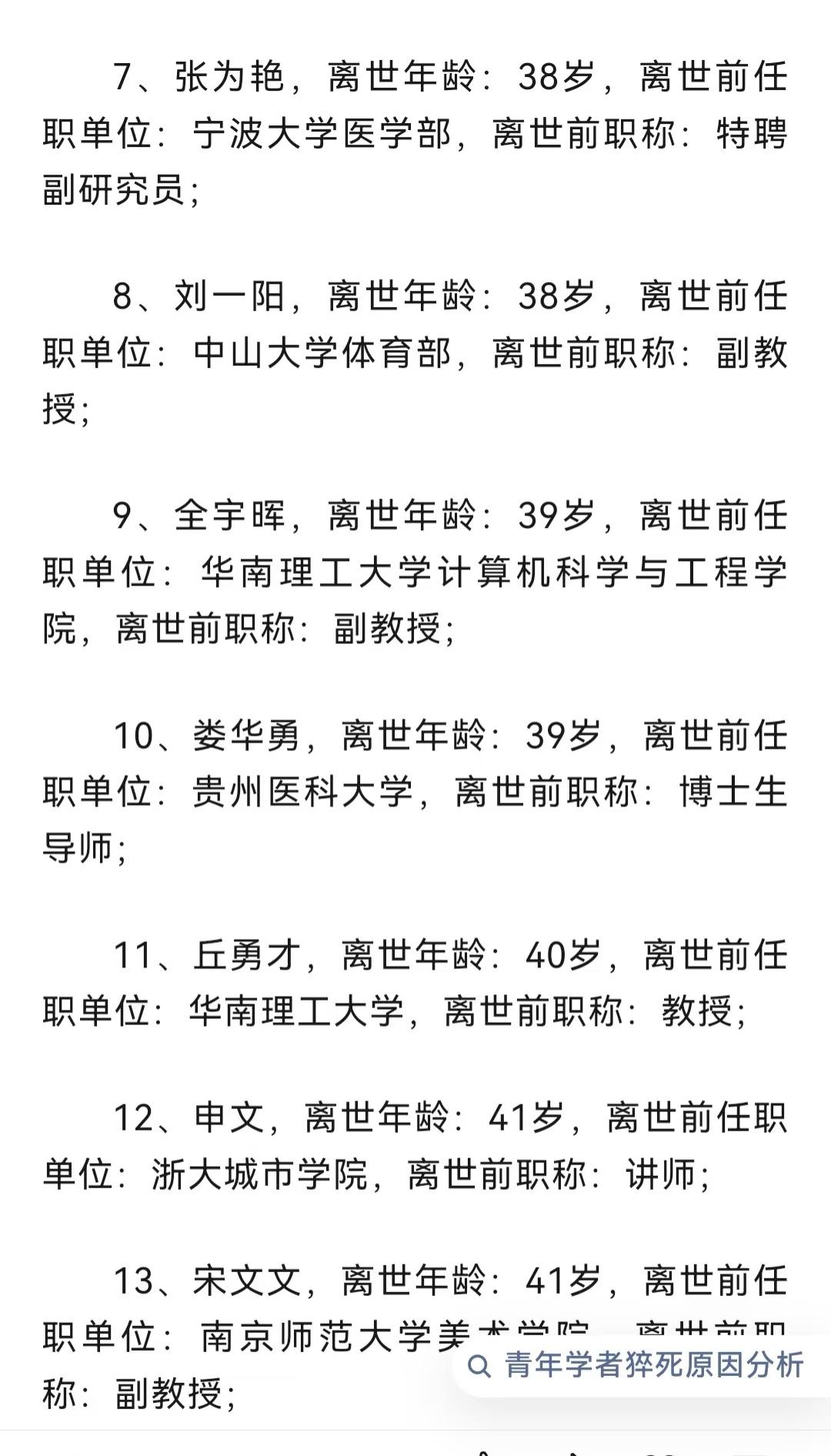 中国青年学者离世数据库(2010-2025): 一共二百多位,最年轻的才30出头… 感觉可能很多都是过于劳累或者压力过大导致去世的……