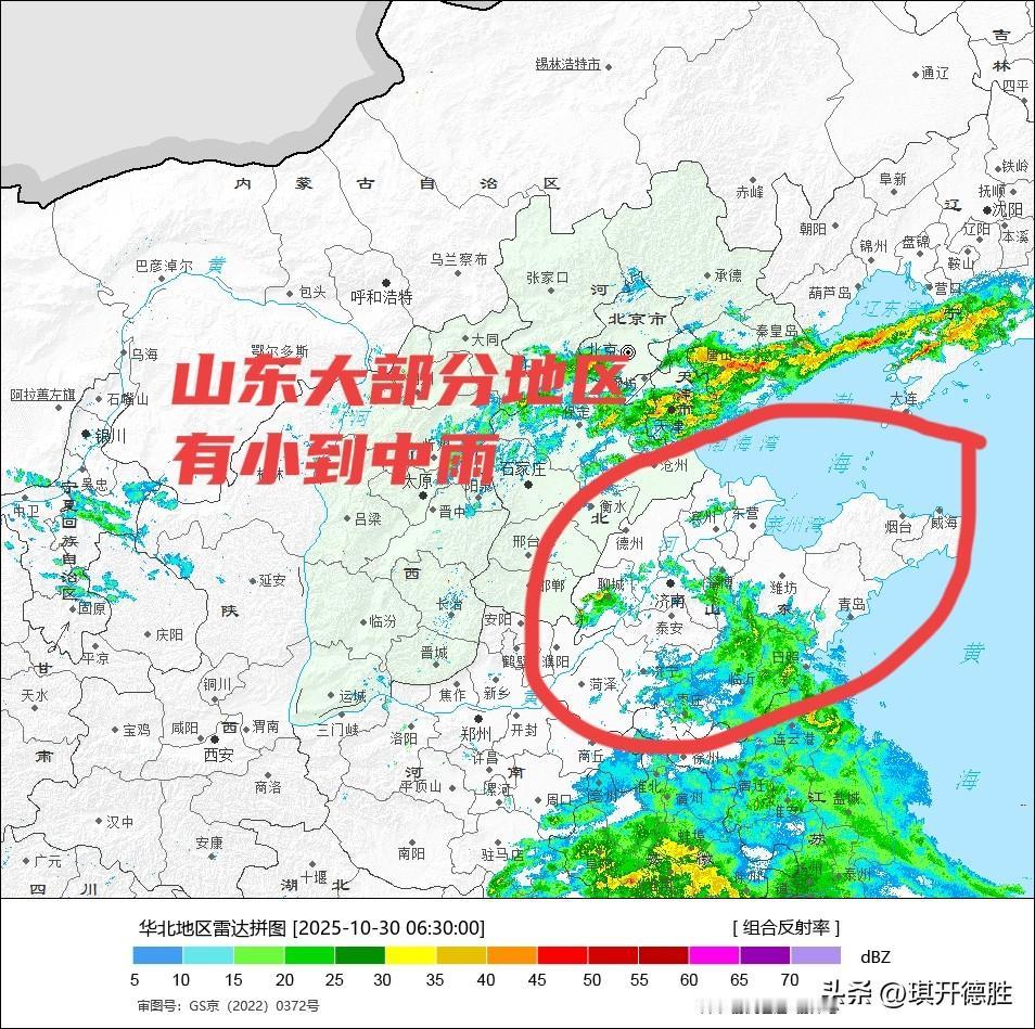 实况天气:山东大范围降雨已经开始,大部分地区有小到中雨! 过去两天齐鲁大地温暖如春,白天最高气温都在20℃左右,俗话说“春冷秋热要下雨”,随着一股弱冷空气的到来,今明两天山东大部分地区将有一轮小到中雨过程,降雨过后,明天开始全省气温将有小幅度下降。 今晨6时的华北雷达拼图显示,鲁南和鲁中地区已经有降水回波出现,同期的降水量实况图也显示局部地区已经出现小雨天气。 来看山东省气象台今晨发布的最新天气预报: 今天白天到夜间,全省天气多云转阴,烟台,威海,青岛,潍坊,日照和临沂有小到中雨局部大雨,其他地区有小雨局部中雨。 明天潍坊,临沂,日照和半岛地区有小雨转晴,其他地区天气阴局部有小雨转晴。 后天全省天气晴间多云。 点右上角关注,看山东最新的重要天气预报。